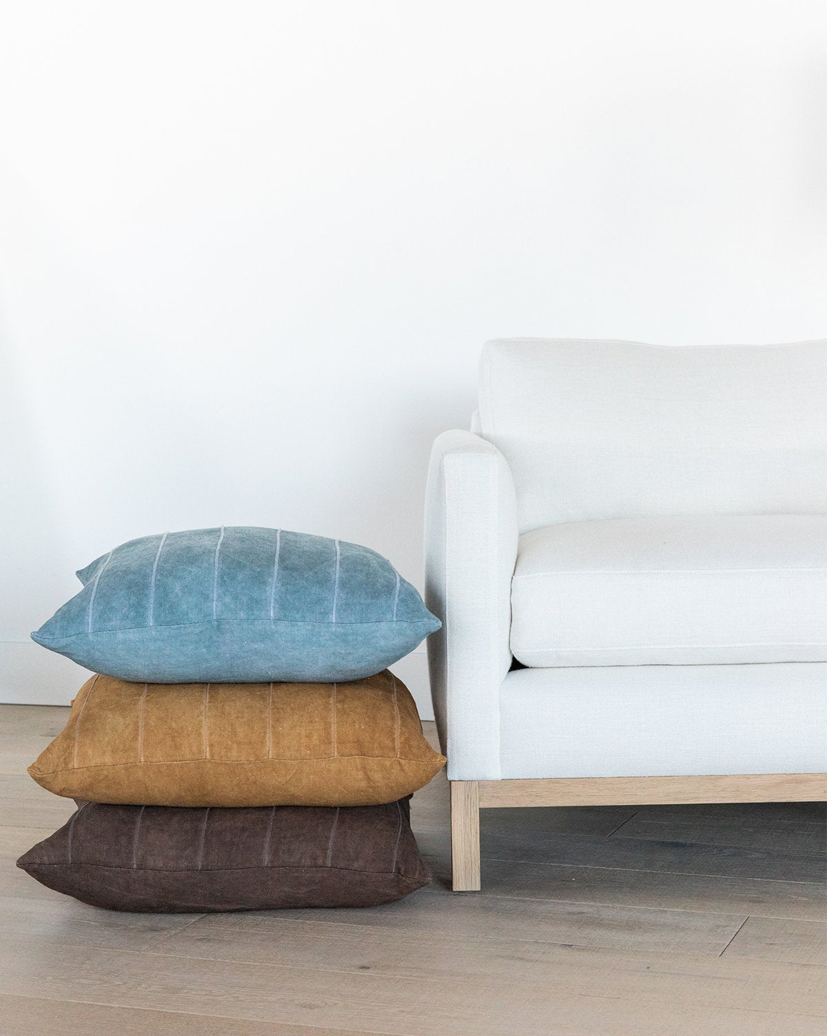 Hand-sewn and dyed using traditional techniques, the Abner Pillow is crafted from 100% Belgian Linen. With three sophisticated color options, each features subtle texture, perfect for mixing and matching with existing textiles.