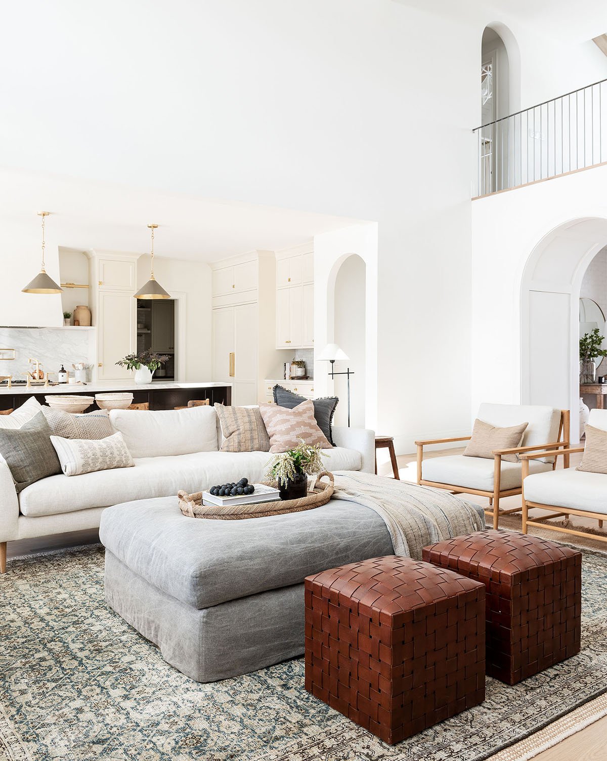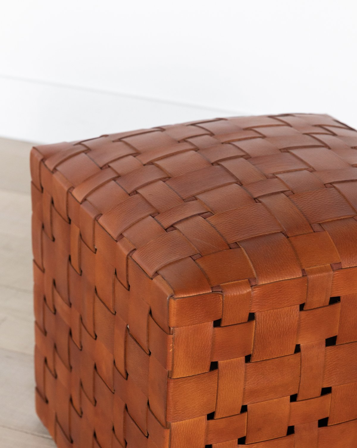 With an intricate woven leather pattern our Ackley Leather Ottoman lends great texture and visual interest to your space. Refined in style, this ottoman enhances the design of your space while adding extra seating and comfort.