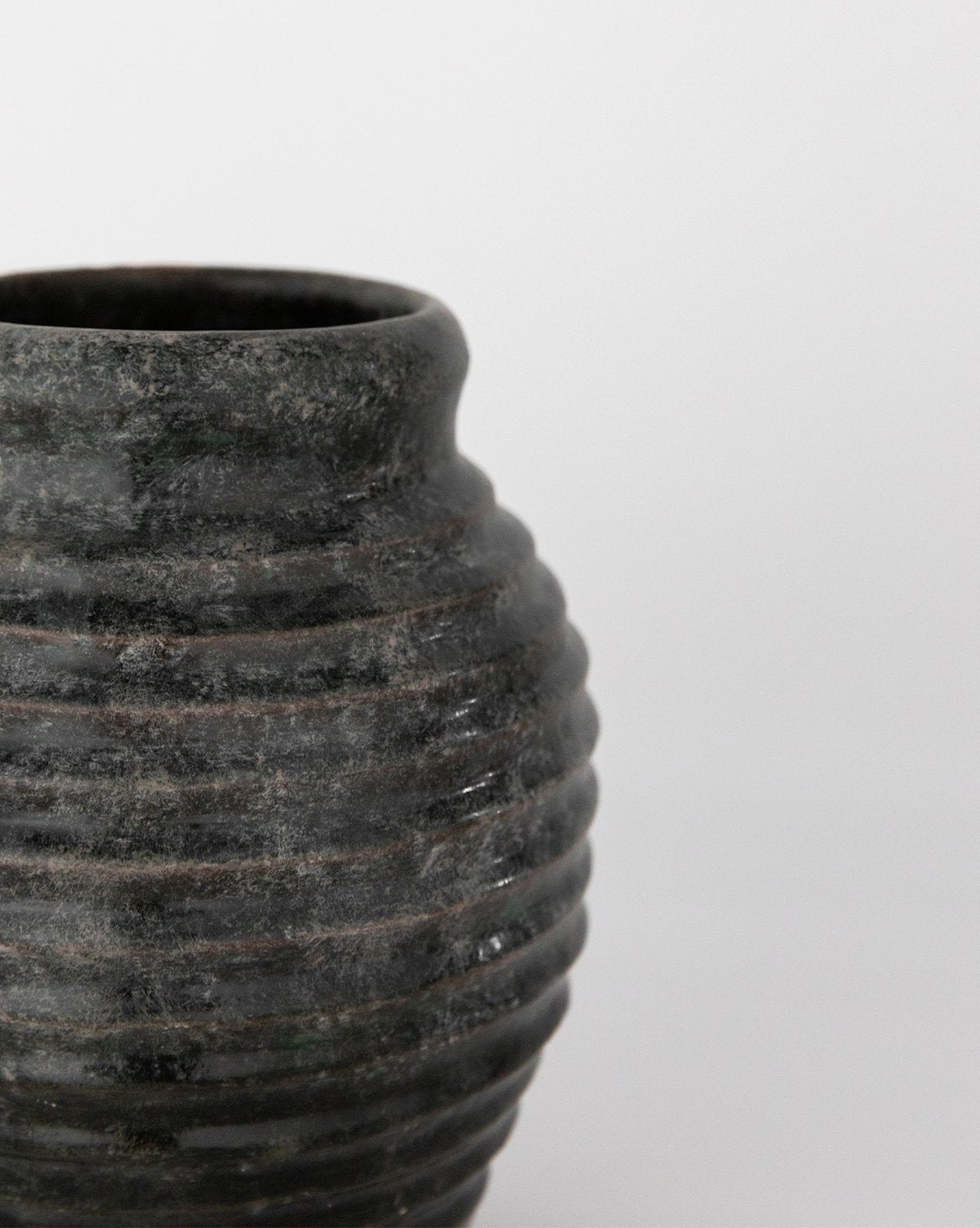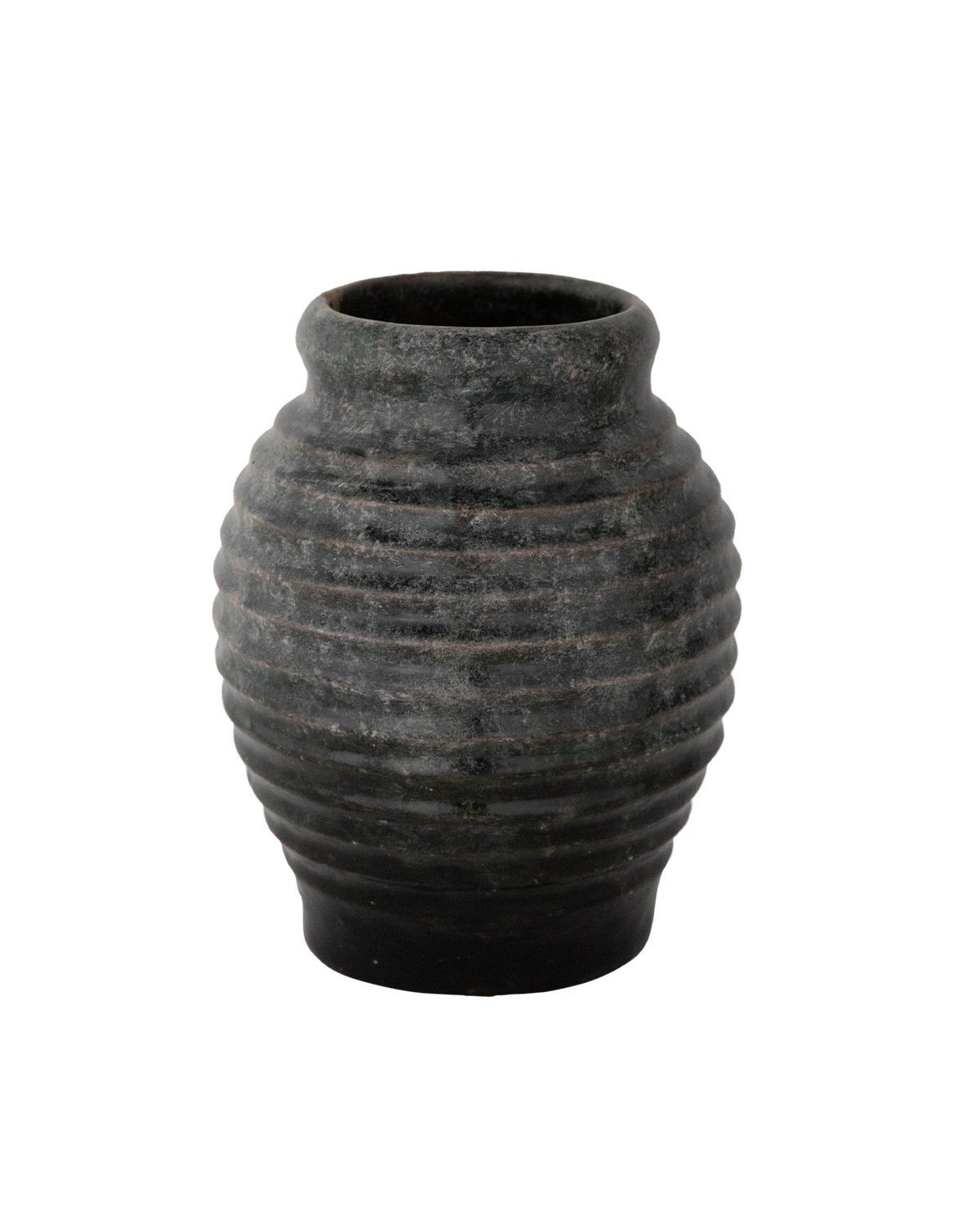 Inspired by the authentic feel of old-world craftsmanship, the Aged Charcoal Barred Jar adds unprecedented depth and dimension to your entryway vignette. Filled with branches, or simply styled on its own, its deep blue imperfect glaze and texture completes your decor with a unique look and feel.
