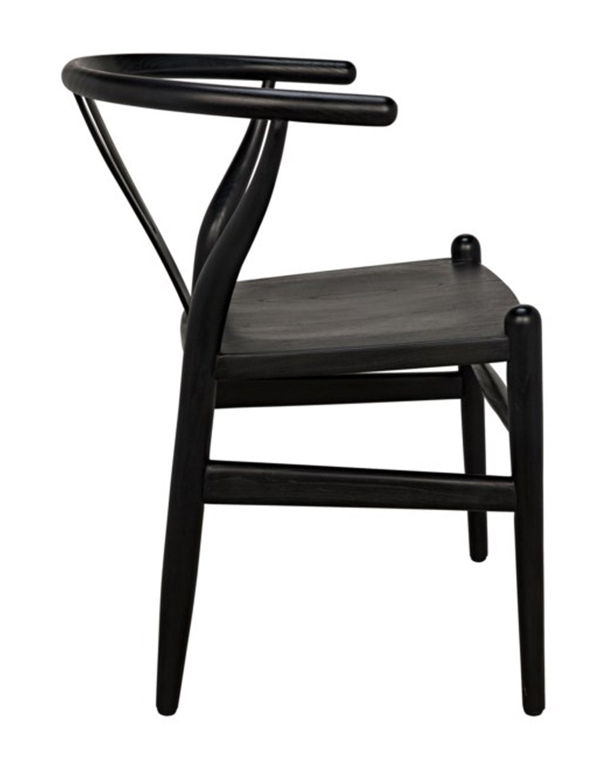 Crafted entirely from sungkai wood, eye-catching shapes lend to the contemporary design of the Ainsley Chair. Added to existing decor, its charcoal black finish adds a modern feel to any space.