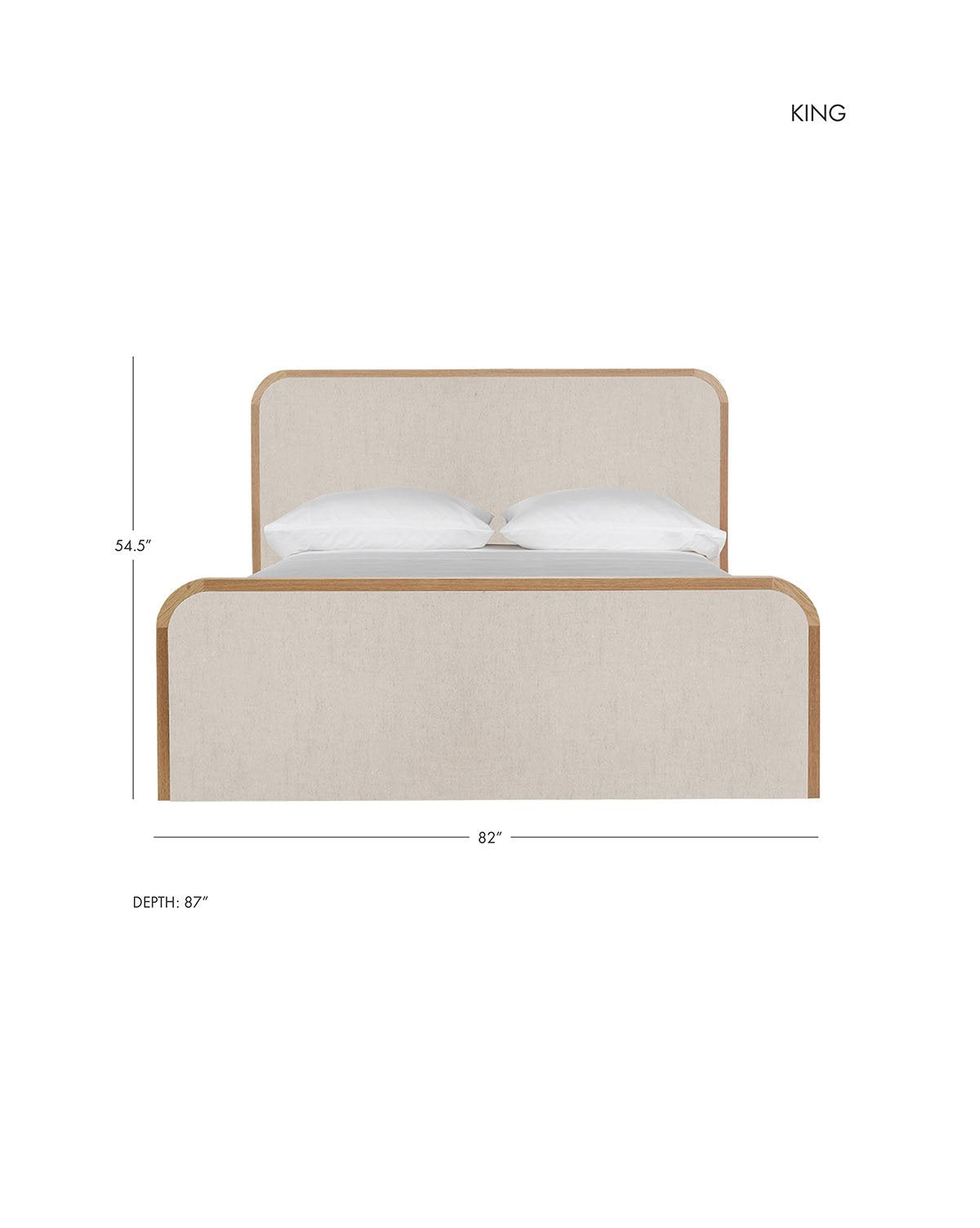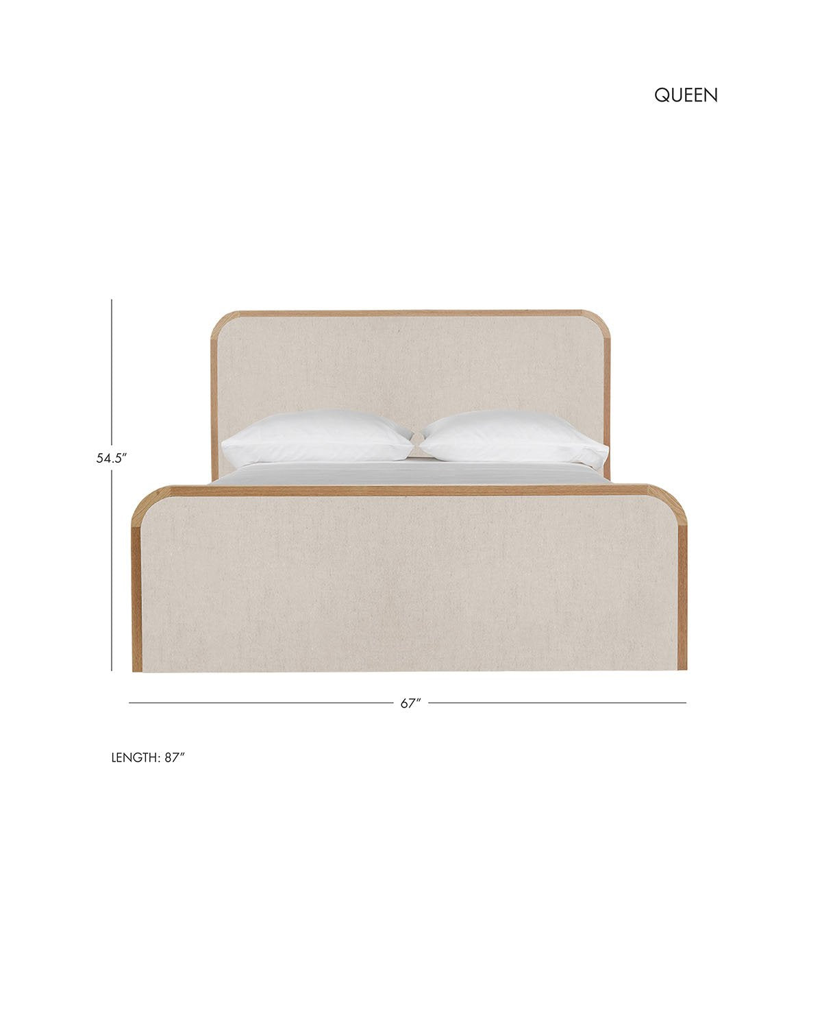 We designed the Ainsworth Bed right in our very own studio. Combining two of our favorite traditional and modern elements, its smooth curves and streamlined details give your bedroom a comfortable and understated feel. With a wooden detail surrounding the upholstery, and frame crafted from kiln-dried white oak, this bed is all about the details. Wrapped in your choice of high-quality fabrics from crypton to linen, it’s completely customizable to fit your personal style.