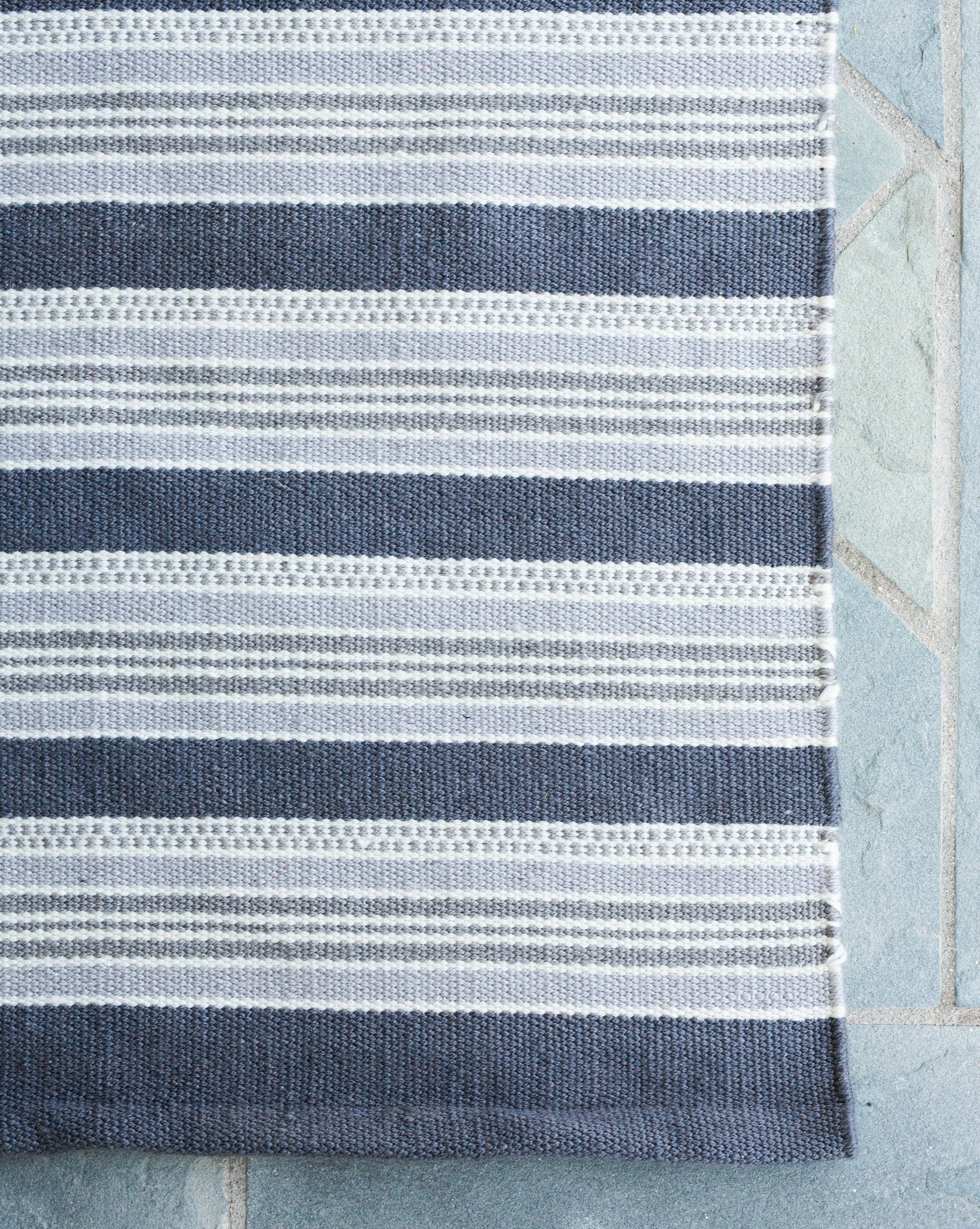 The Akono rug takes classic awning stripes and makes them even better with an extra layer of spotty gray stripes. Not only handmade from eco-friendly and recycled materials, it's fade resistant and can be easily hosed off when dirty. This durable rug is the perfect classic addition to kids rooms, your front porch or any other high traffic areas.