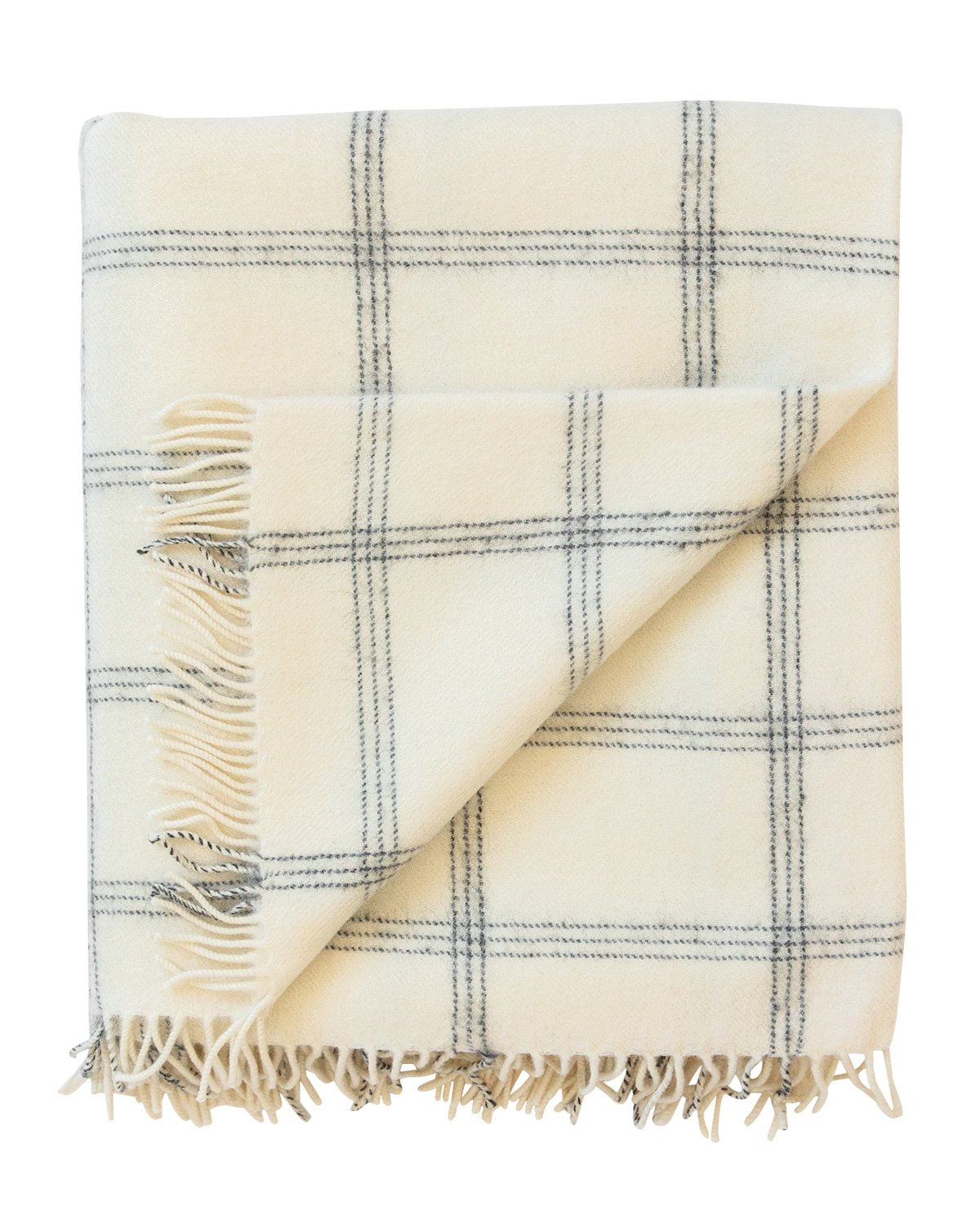 Crafted from a mixture of luxurious merino wool and alpaca, the Alpaca Windowpane Throw is a sophisticated addition to your sofa or bed. Its elegant cream hue brings warmth, as a simple plaid pattern lends added dimension.