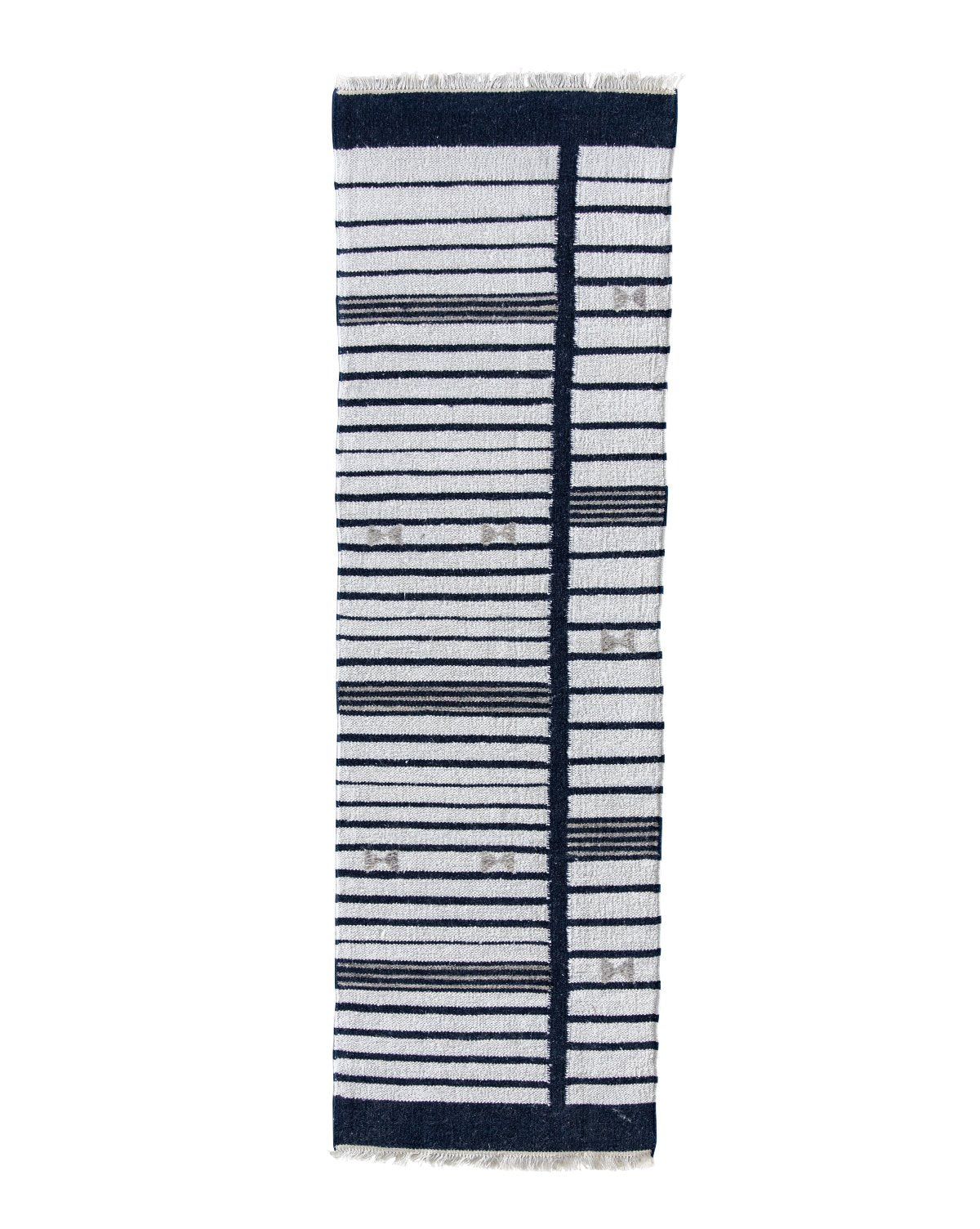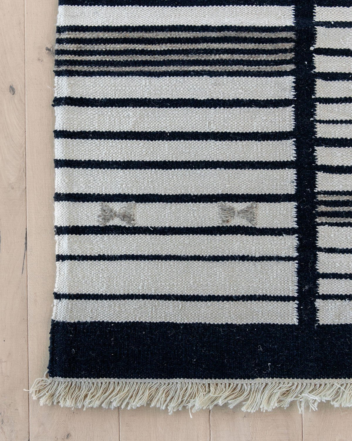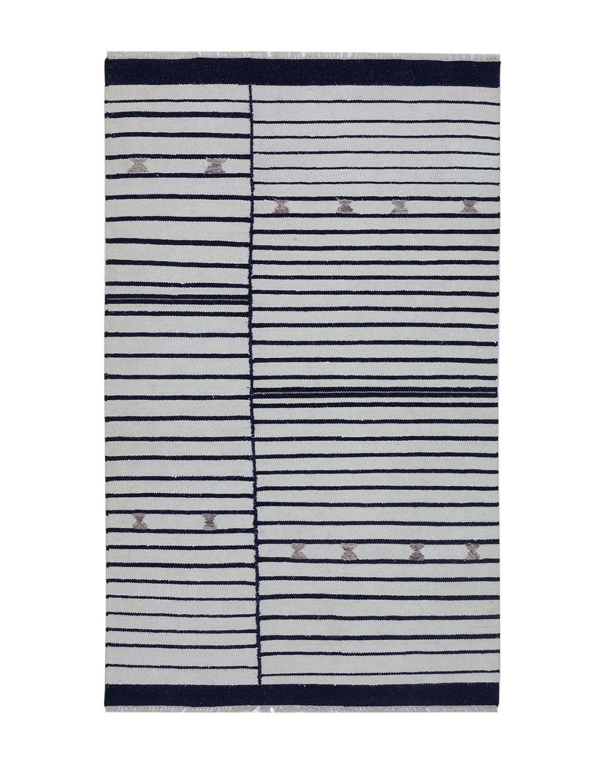 Anchoring your space with a modern feel, our Ansel Woven Rug brings both contemporary design and visual contrast to your space with its inky blue and white striped motif. Handwoven by skilled artisans, its 100% wool construction features antimicrobial properties and withstands spills, lending durable style to any room.