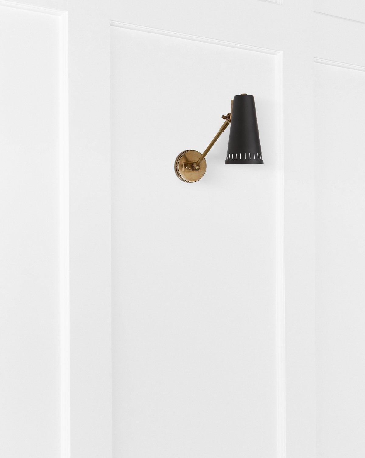 The Antonio One Arm prioritizes function without sacrificing attractive design. An adjustable metal arm supports its long conical shade that will direct the light wherever you want it to go, while thin slits on the border expand the light and offer charming details.