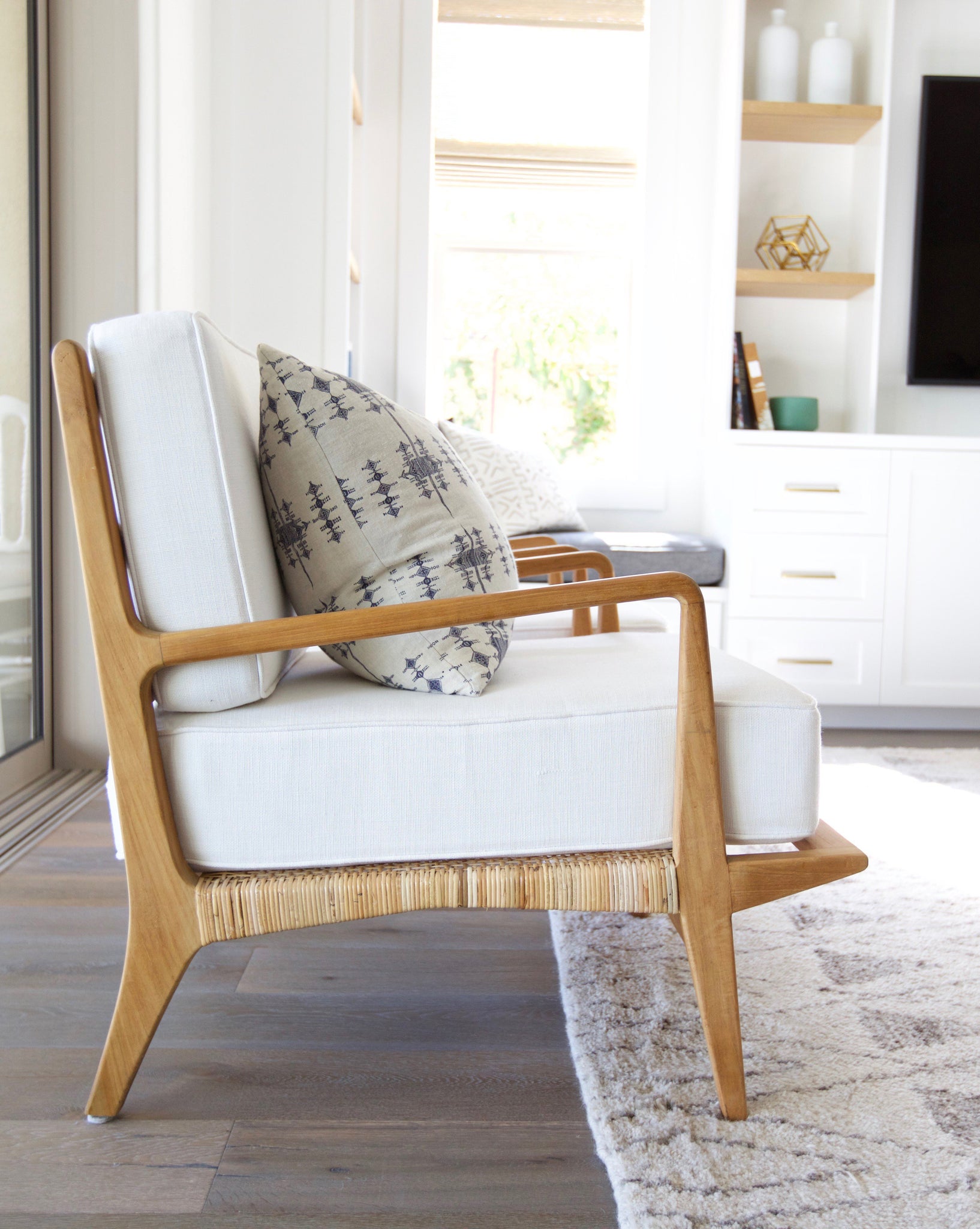 Refined and sophisticated with a natural edge, our Arlo Chair brings beautiful form alongside function. With rattan detailing and a dimensional teak frame, this chair blends easily with a variety of design styles from modern to traditional.