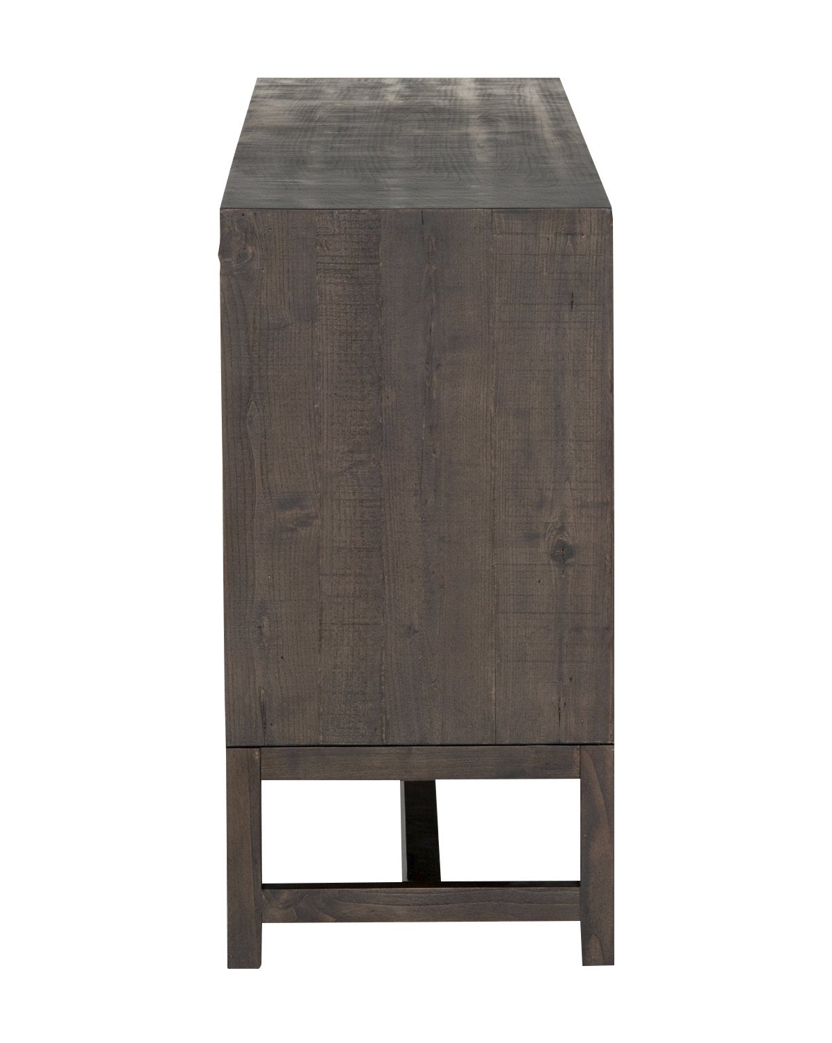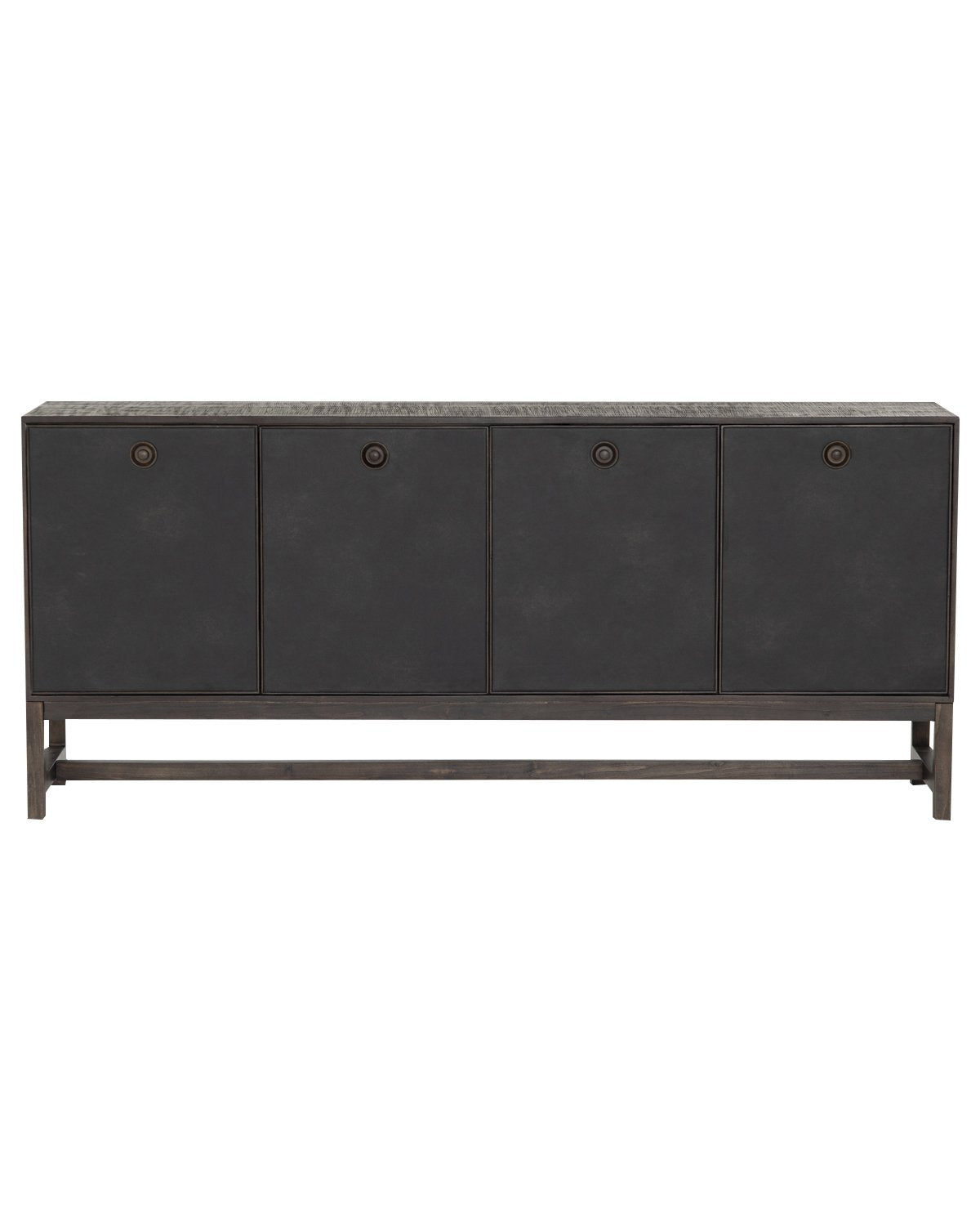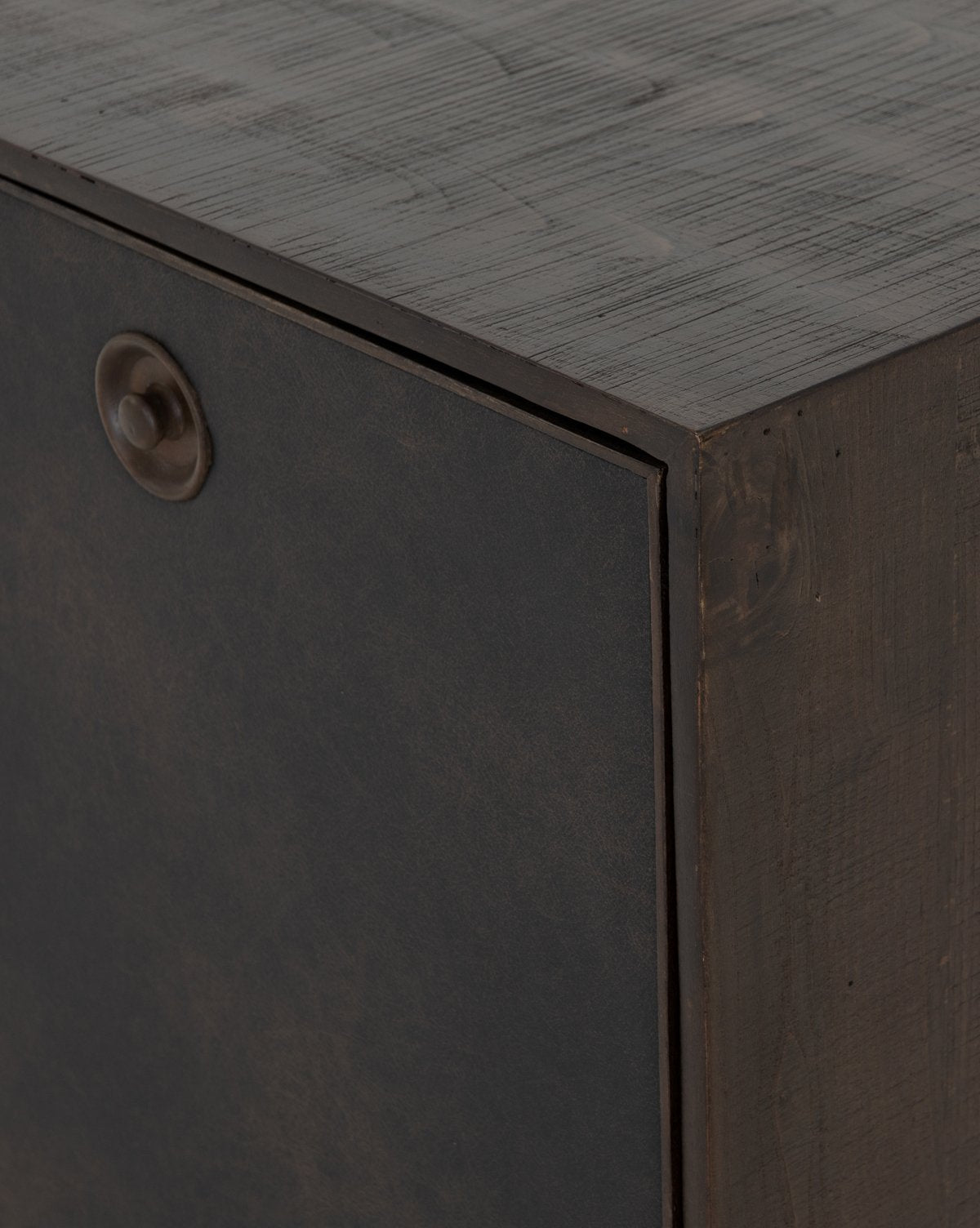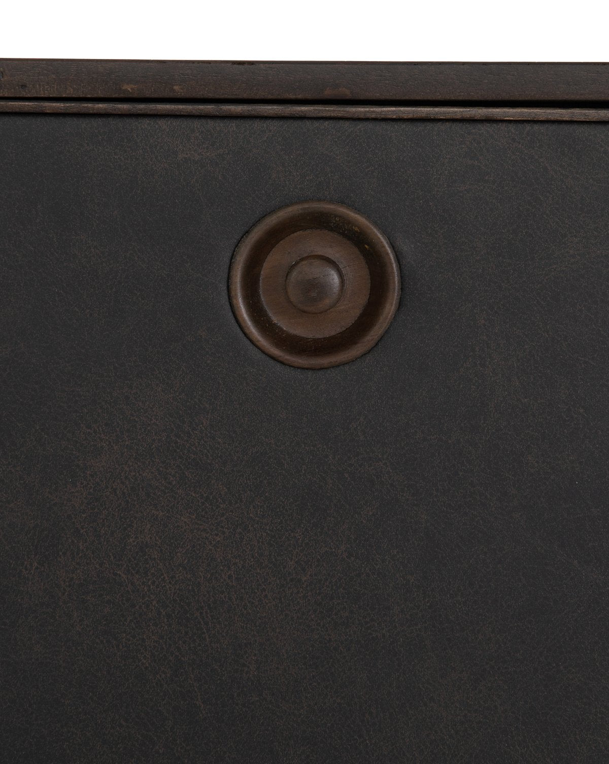 Mixed materials make a statement with the modern design of our Banks Sideboard. Oxidized sungkai wood crafts the sleek form of the sideboard, while black faux leather doors add a smooth, yet textural touch. Added to existing decor, this piece immediately updates the design of any space.