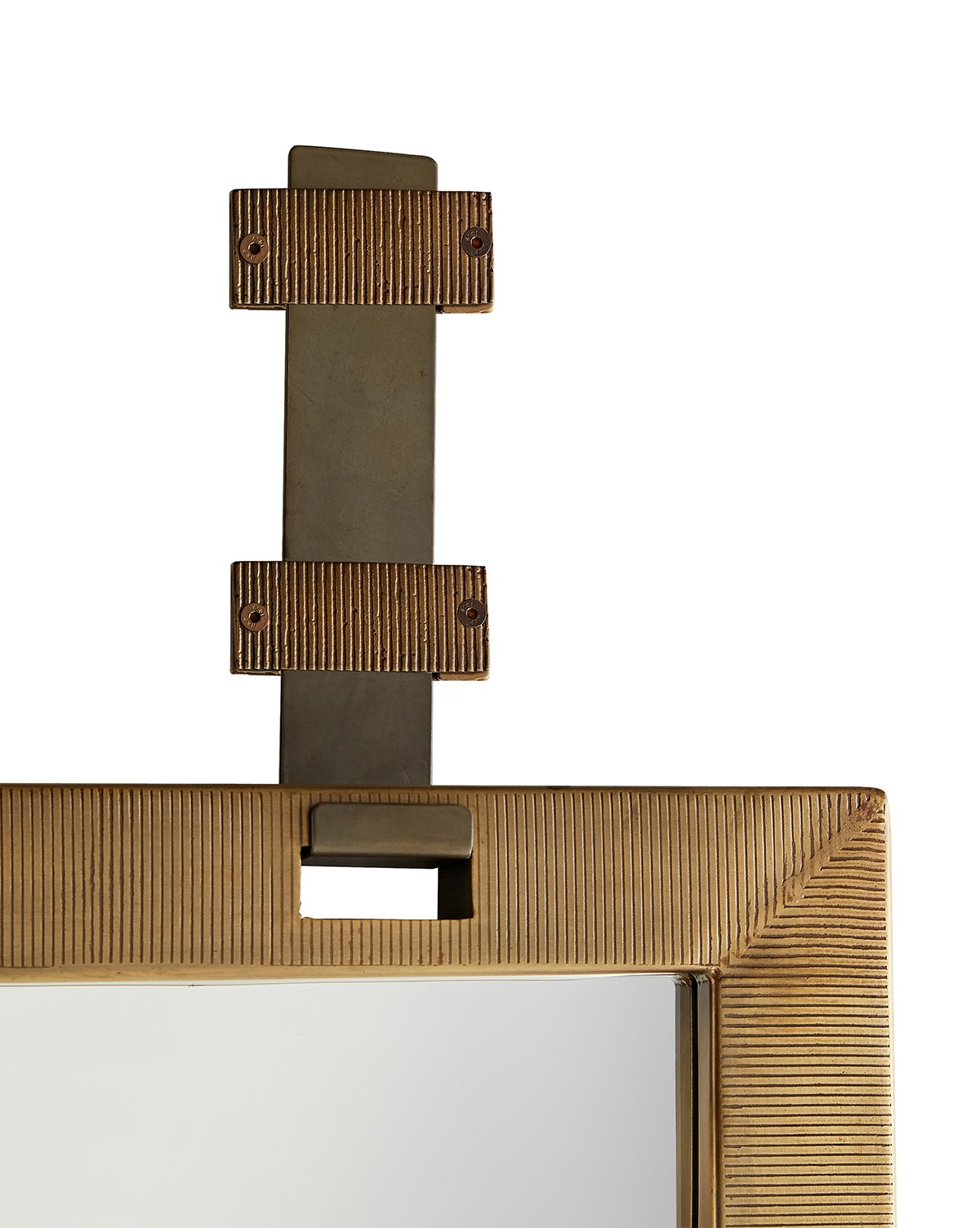 Our Belmont Mirror doubles as a work of art in your space. All about the details, subtle grooves are hand-carved into its rectangular frame adding dimension to the modern form. Given the illusion of suspension from its decorative natural iron cleats, this mirror is anchored by the antique brass frame creating a look that’s both on-trend and transitional.
