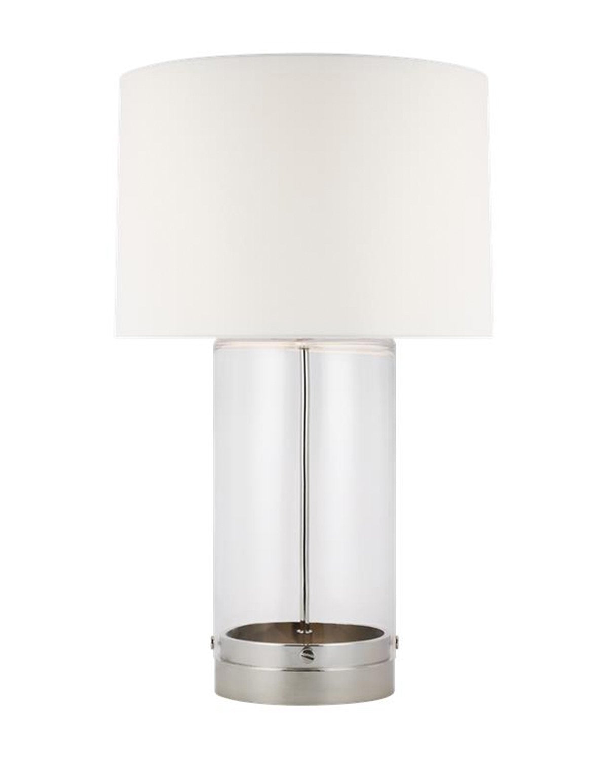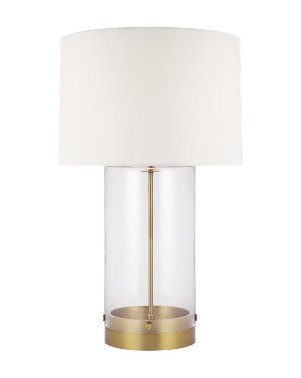 Simple and cylindrical, our Allen Table Lamp features an oversized drum shade setting off its modern and minimal form. Versatile enough for any space, sleek metal details finished in burnished brass or polished nickel work together with its glass cylinder stand, elevating the design to a new level.
