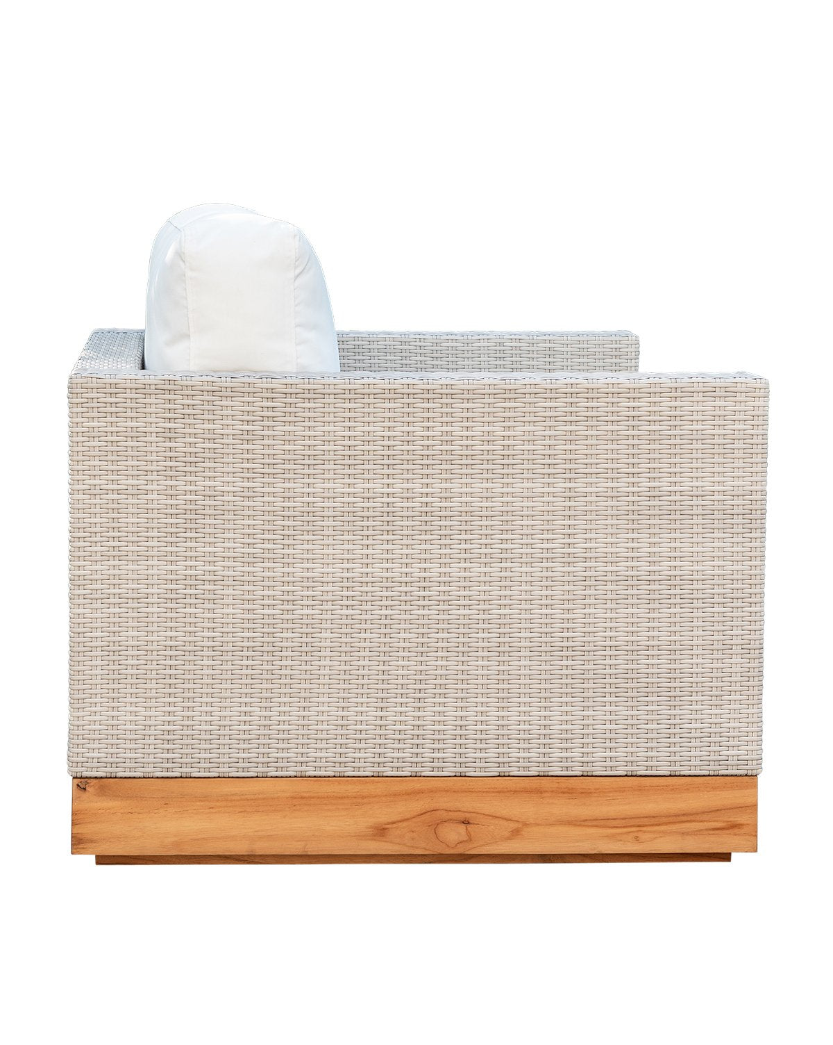 Streamlined and sophisticated with an added coastal feel, the Berdine Wicker Outdoor Chair makes the most of both function and form. Fitted on a durable, high-quality teak base, this chair makes it easy to relax with its comfortable outdoor grade cushions. Easy to mix with existing outdoor furniture, its simple silhouette will update your space with more modern, transitional design.