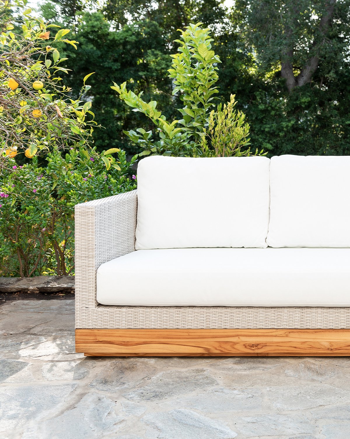 Streamlined and sophisticated with an added coastal feel, the Berdine Wicker Outdoor Sofa makes the most of both function and form. Fitted on a durable, high-quality teak base, this full length sofa makes it easy to relax with its comfortable outdoor grade cushions. Easy to mix with existing outdoor furniture, its simple silhouette will update your space with more modern, transitional design.