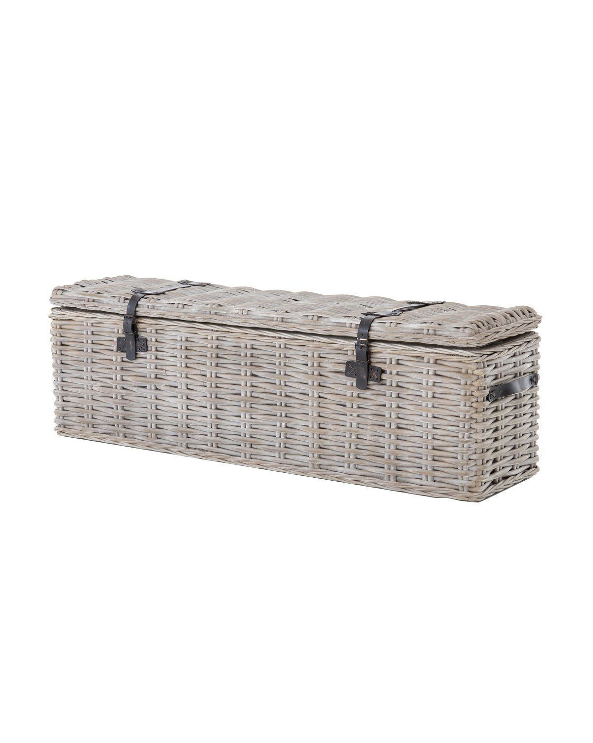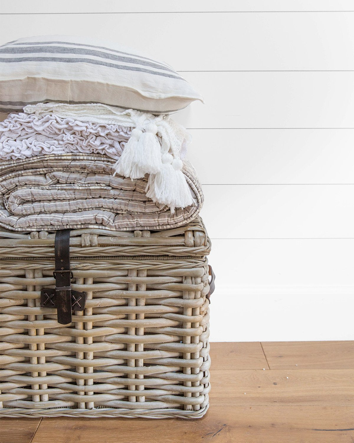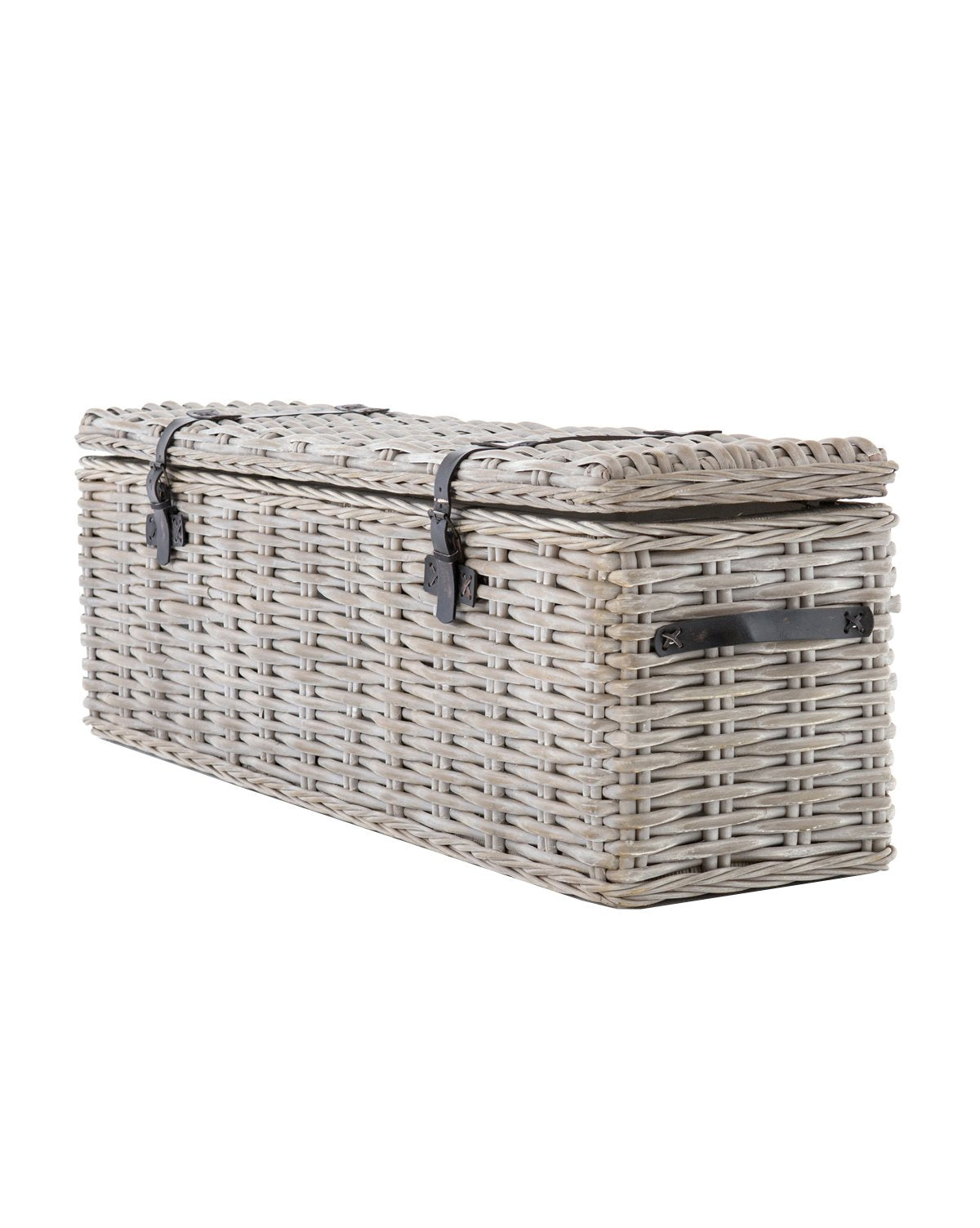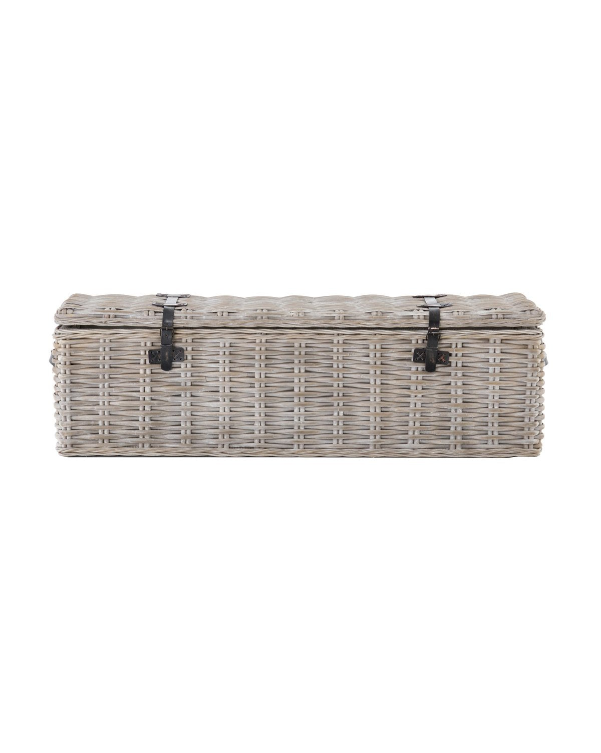 Made from woven rattan with contrasting leather straps, this trunk’s wide scale makes it perfect for functional storage. Inside is just as gorgeous with features like a linen-lined, solid mahogany frame and ample storage space.