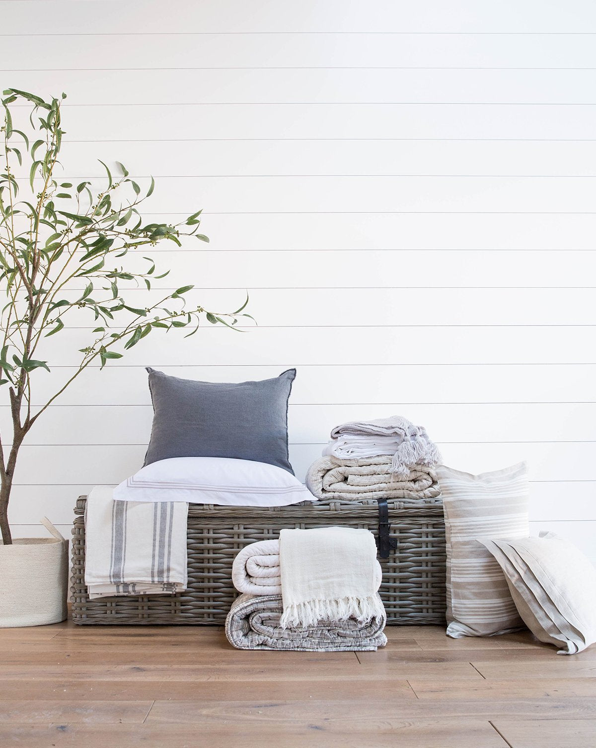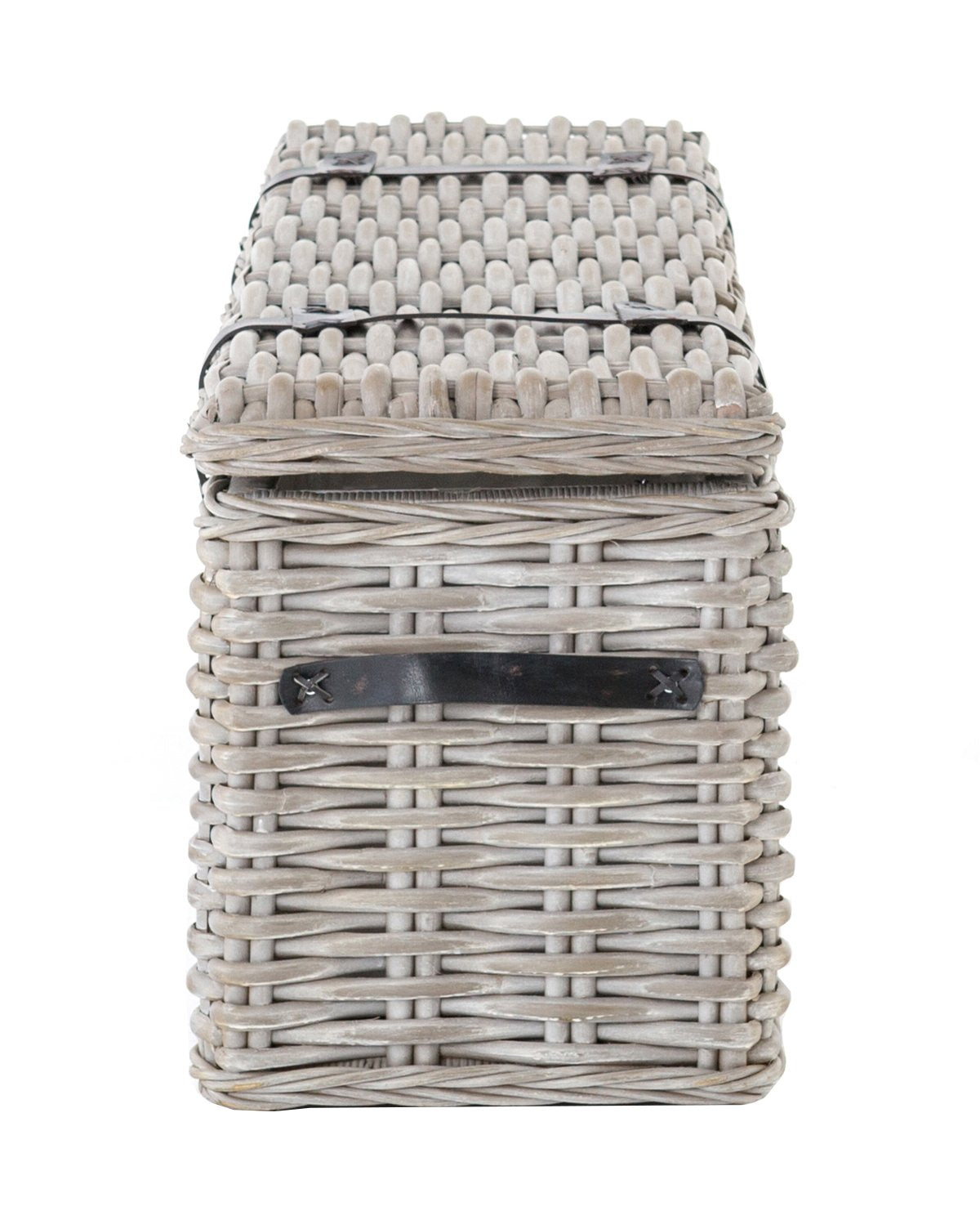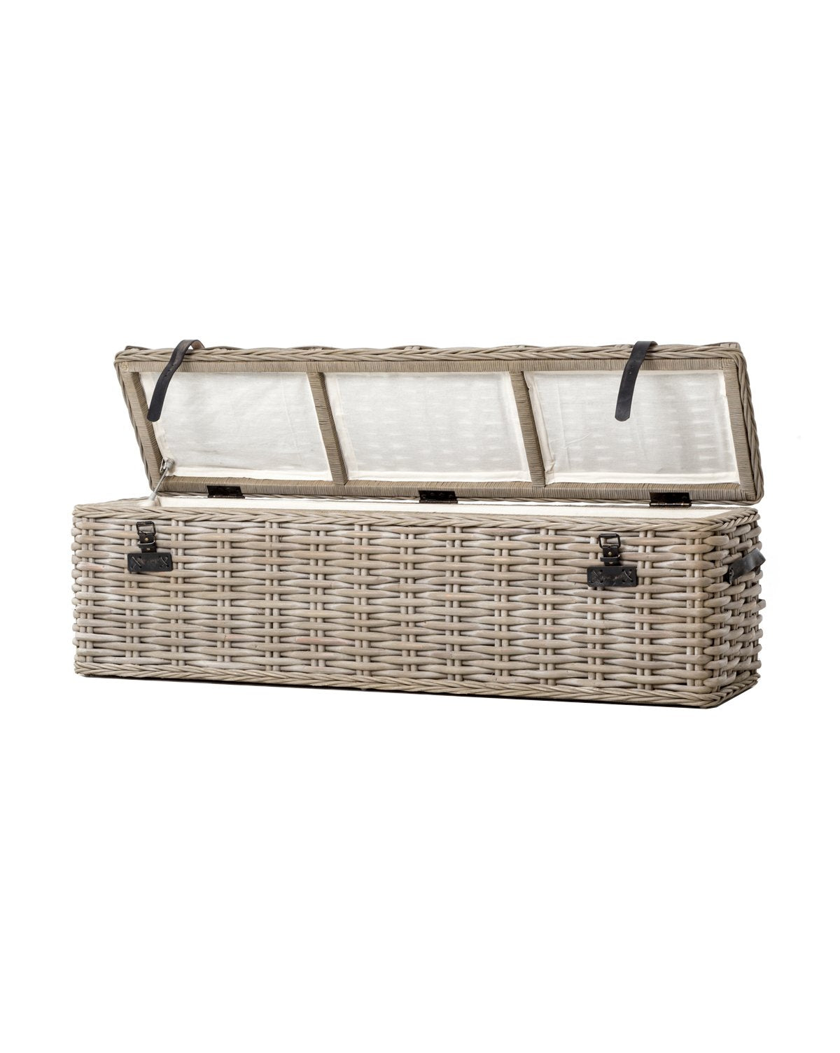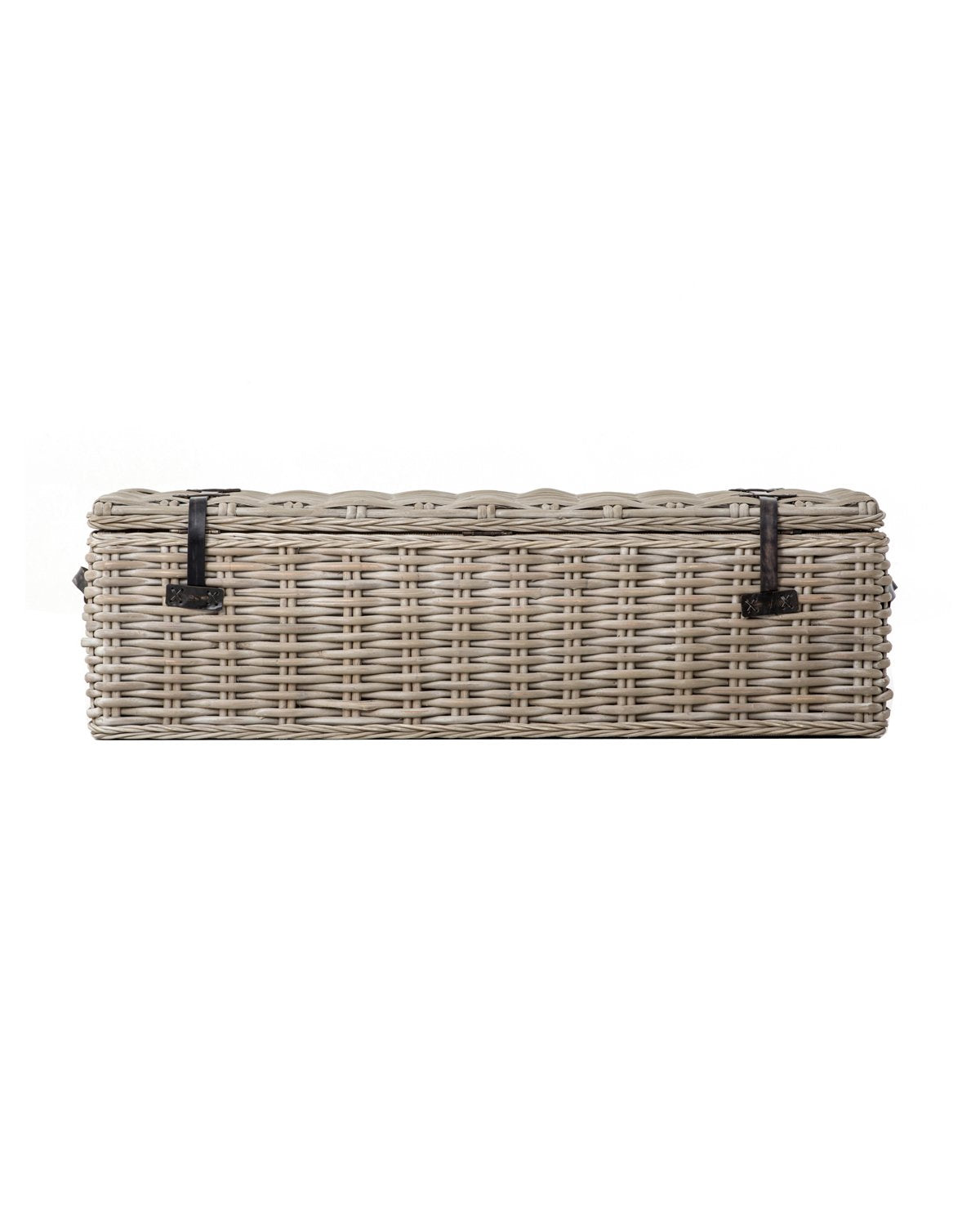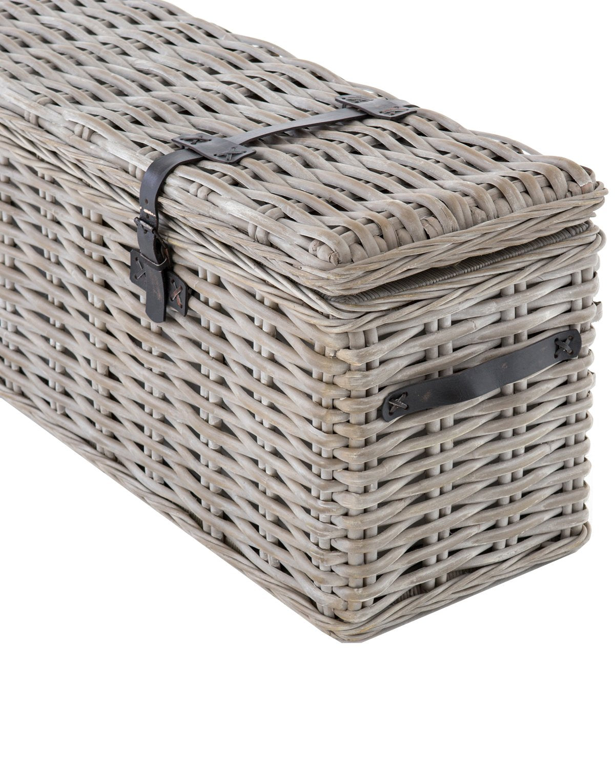 Made from woven rattan with contrasting leather straps, this trunk’s wide scale makes it perfect for functional storage. Inside is just as gorgeous with features like a linen-lined, solid mahogany frame and ample storage space.