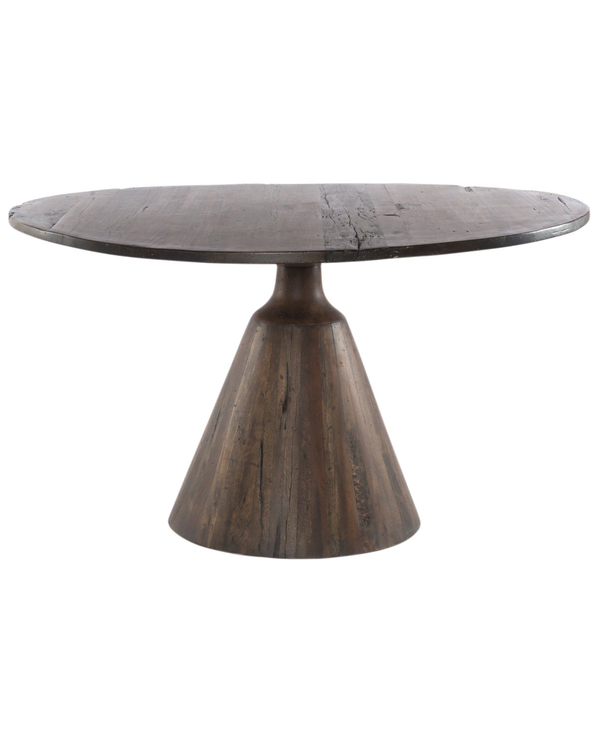 The Blake Dining Table honors nature’s aesthetic while made into a modern pedestal shape. Entirely sourced from India wood, the knots and marks add character all throughout its dramatically tapered base, and circular flat top.