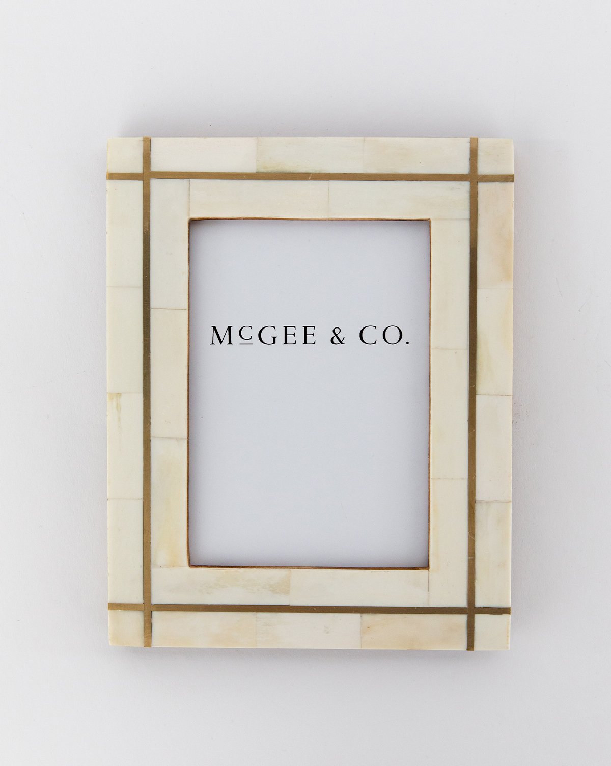 With a unique juxtaposition of brass and bone, this elegantly crafted frame brings your favorite memories to the forefront of your space in sophisticated style. Placed in your built-ins or styled on your nightstand, let its refined aesthetic finish off your room with an added layer of dimension.