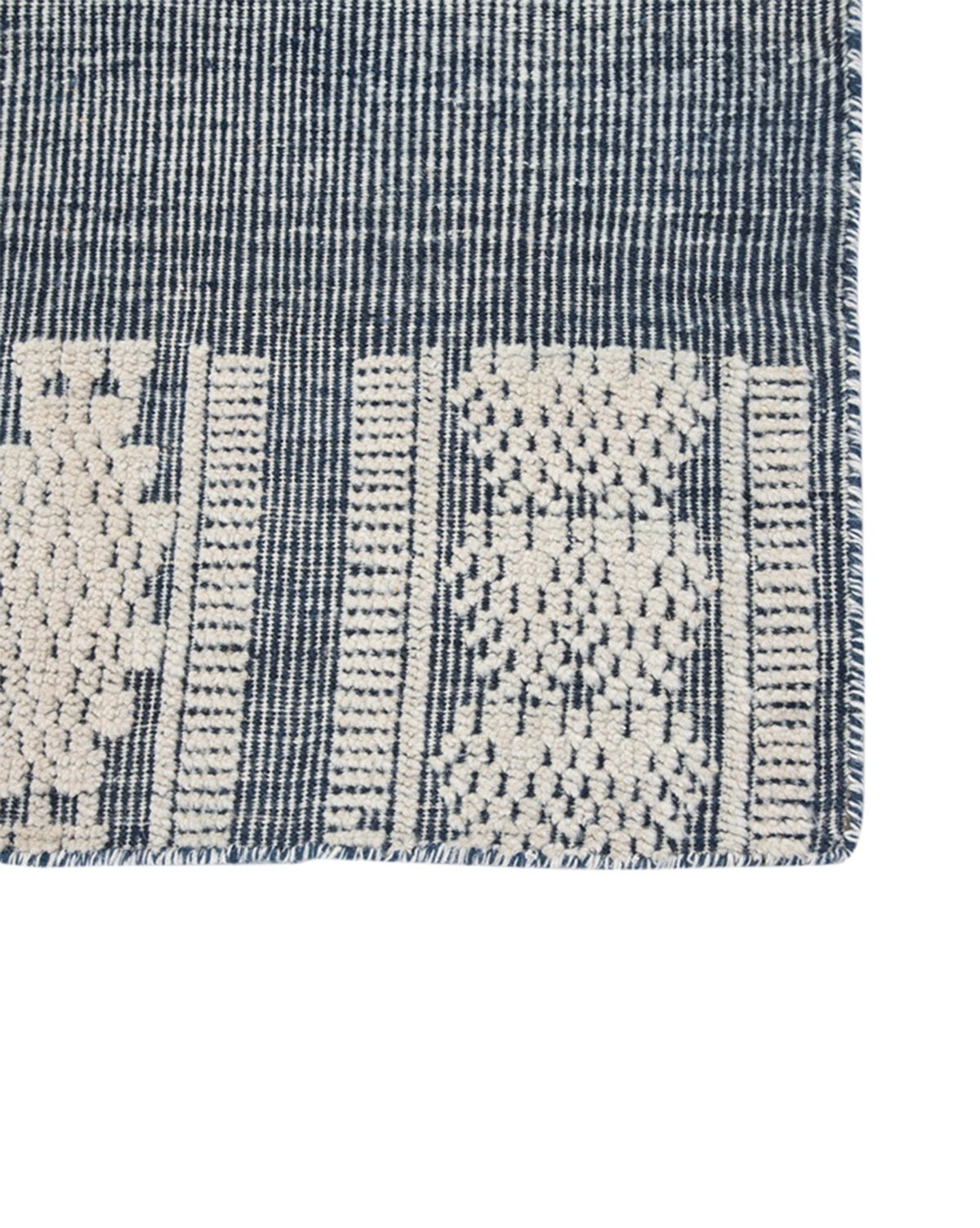 Hand-knotted by skilled artisans in India and crafted entirely from wool, our Brighton Wool rug brings eclectic style to your home with its intricately detailed lace-like motif. Its deep blue base and cream details work as a neutral, blending seamlessly in your space. Durably constructed with a timeless design, this rug anchors your space with cultural appeal.