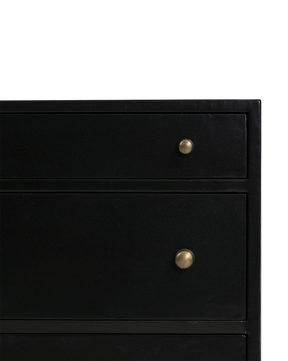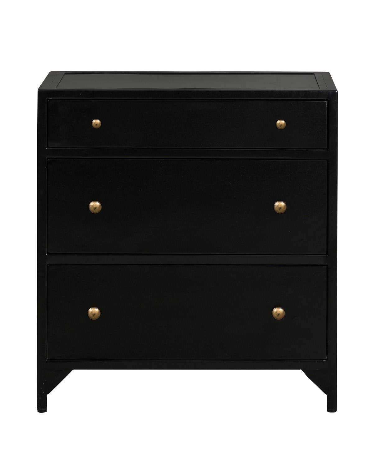 Crafted entirely from sleek black iron, this traditionally shaped nightstand is given an industrial update. With high contrast from circular brass knobs, the Brody Nightstand brings the best of depth with its stately, spacious design.