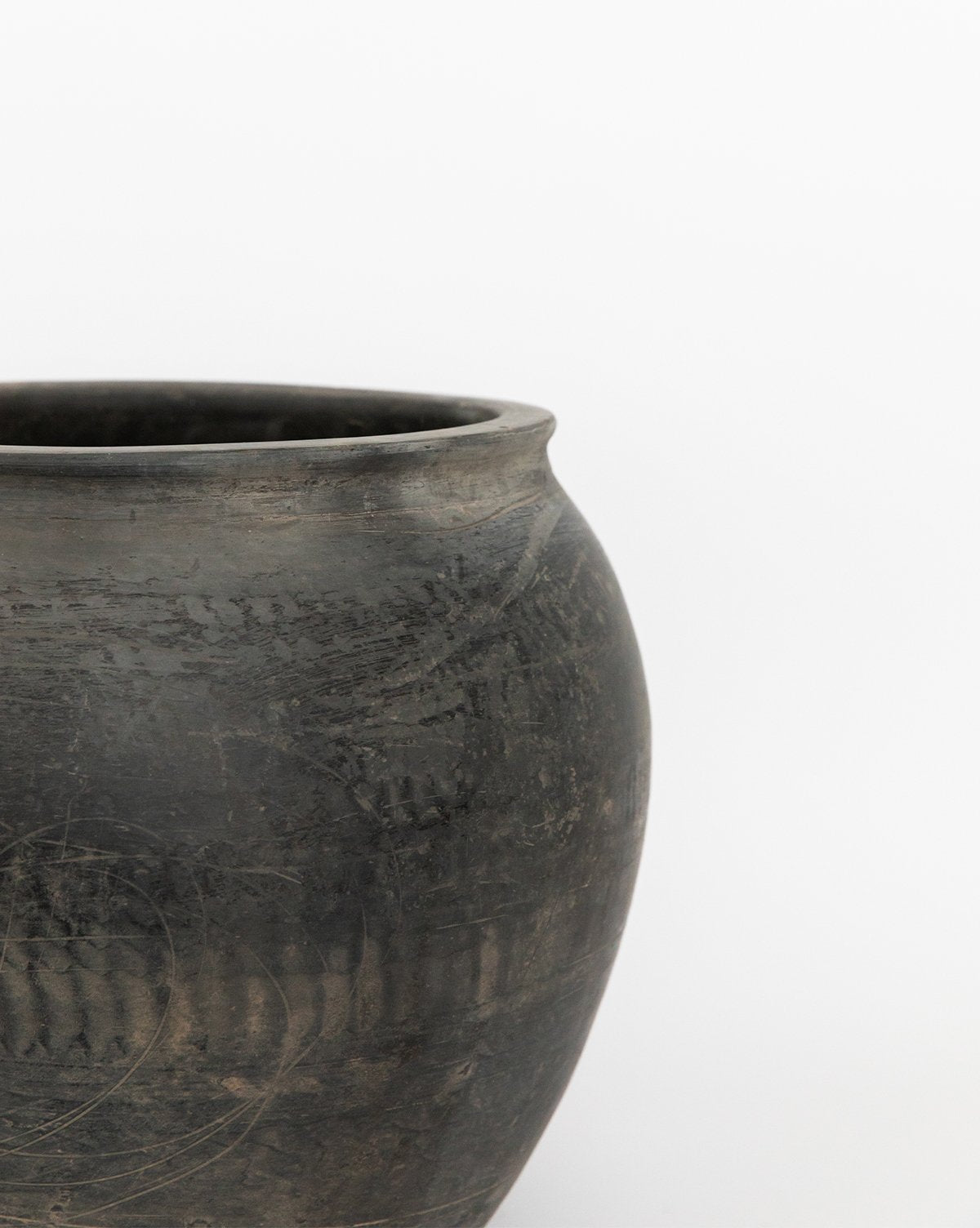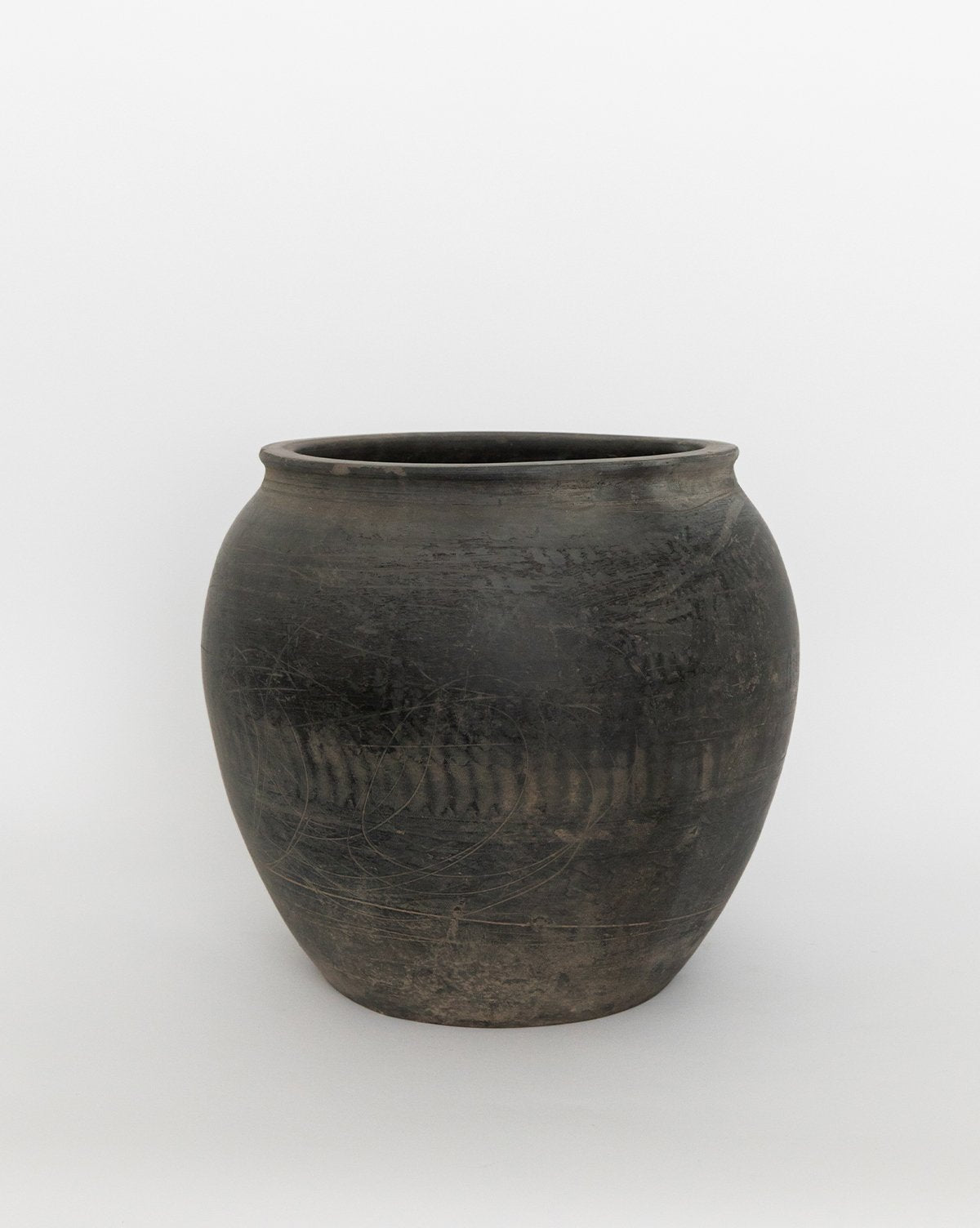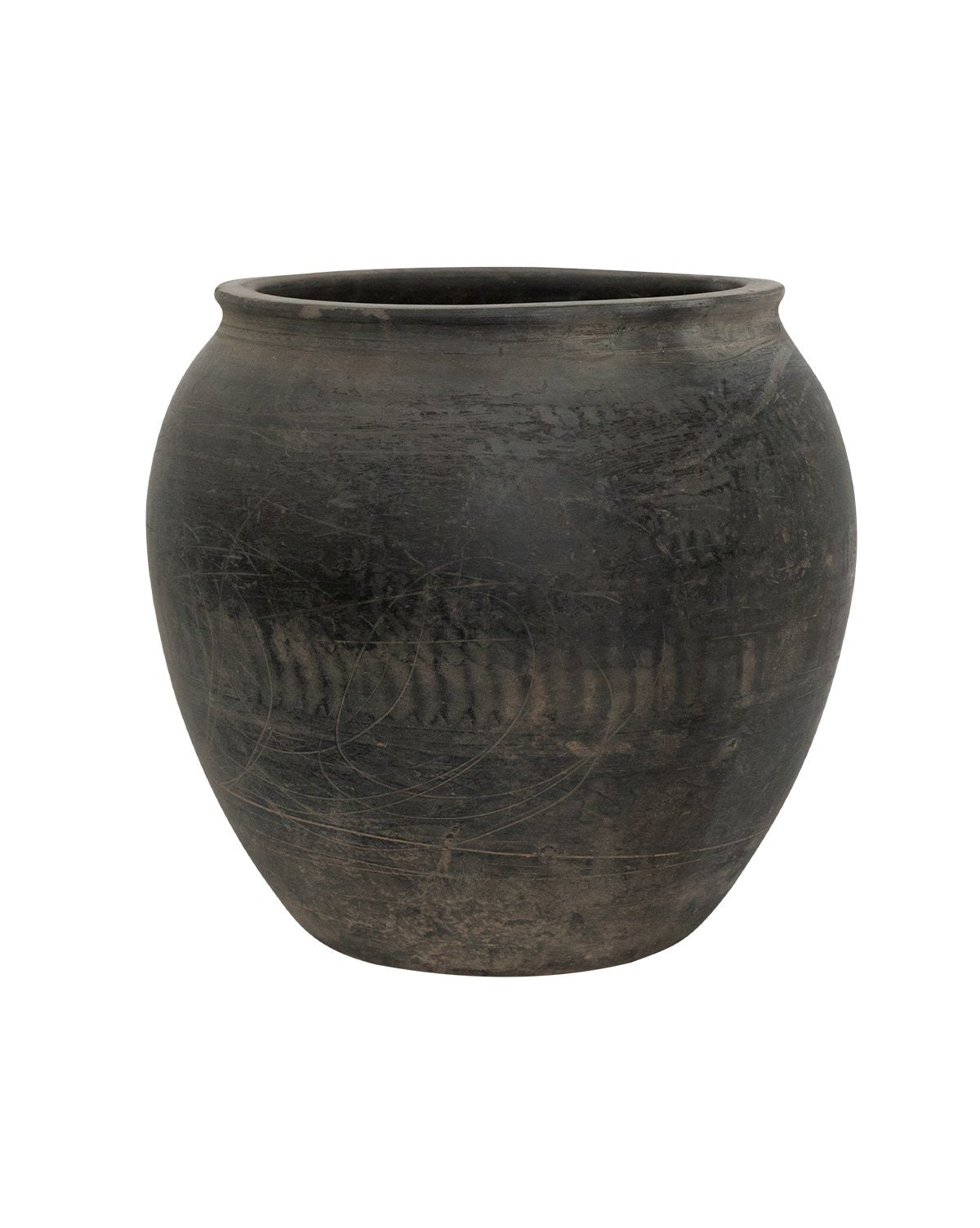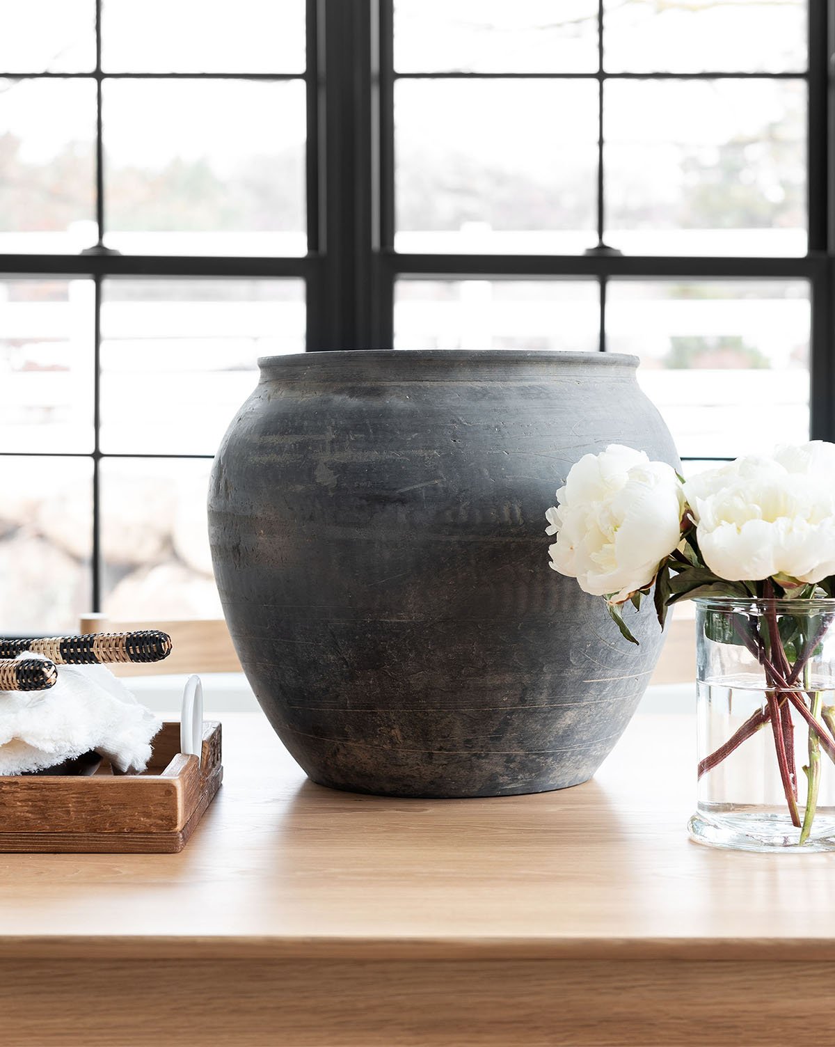 Our hand-crafted Brushed Charcoal Vase draws your eye with its deep coloring and natural texture. Placed in your built-ins to add dimension or simply styled on a side table or pedestal, use its authentic character to liven up your living space. Each beautiful vase is over 100 years old, it's no wonder they offer such an antique, found look!