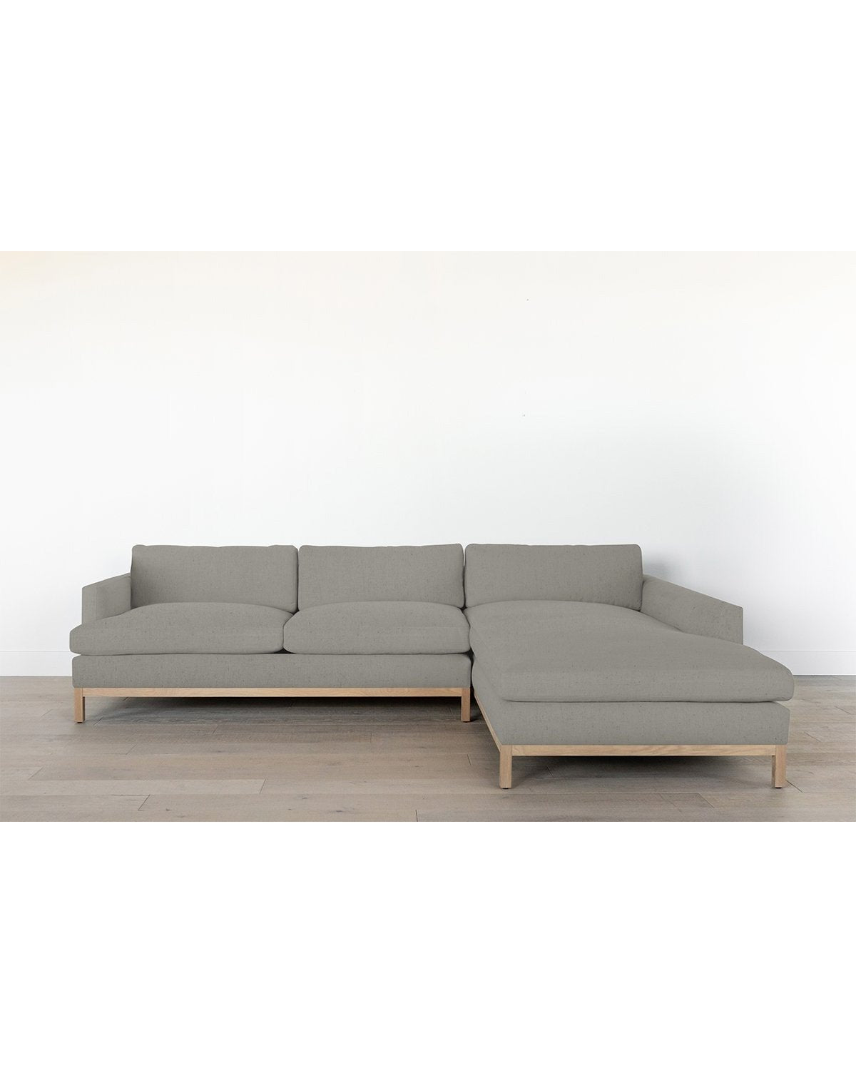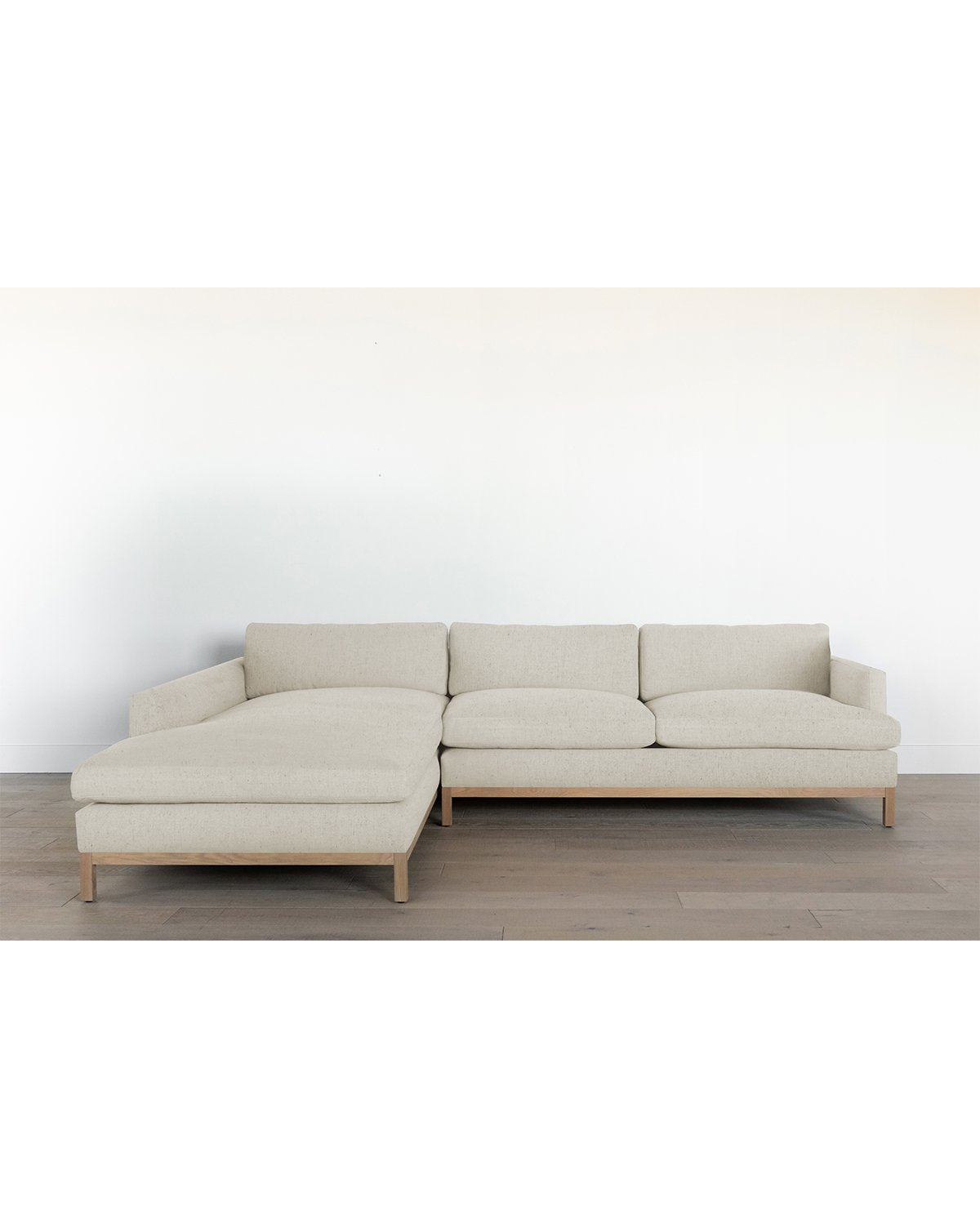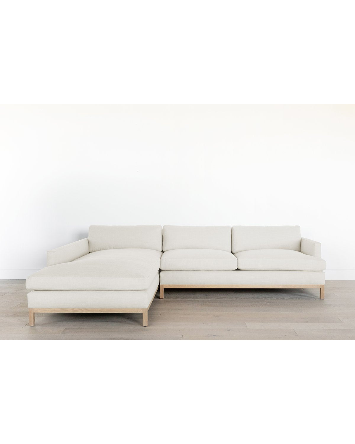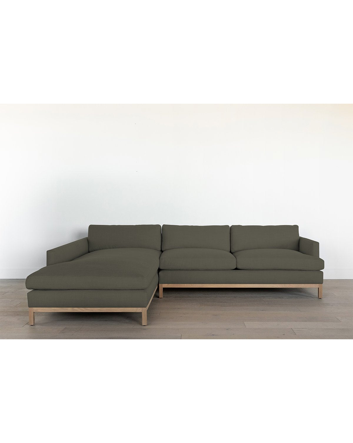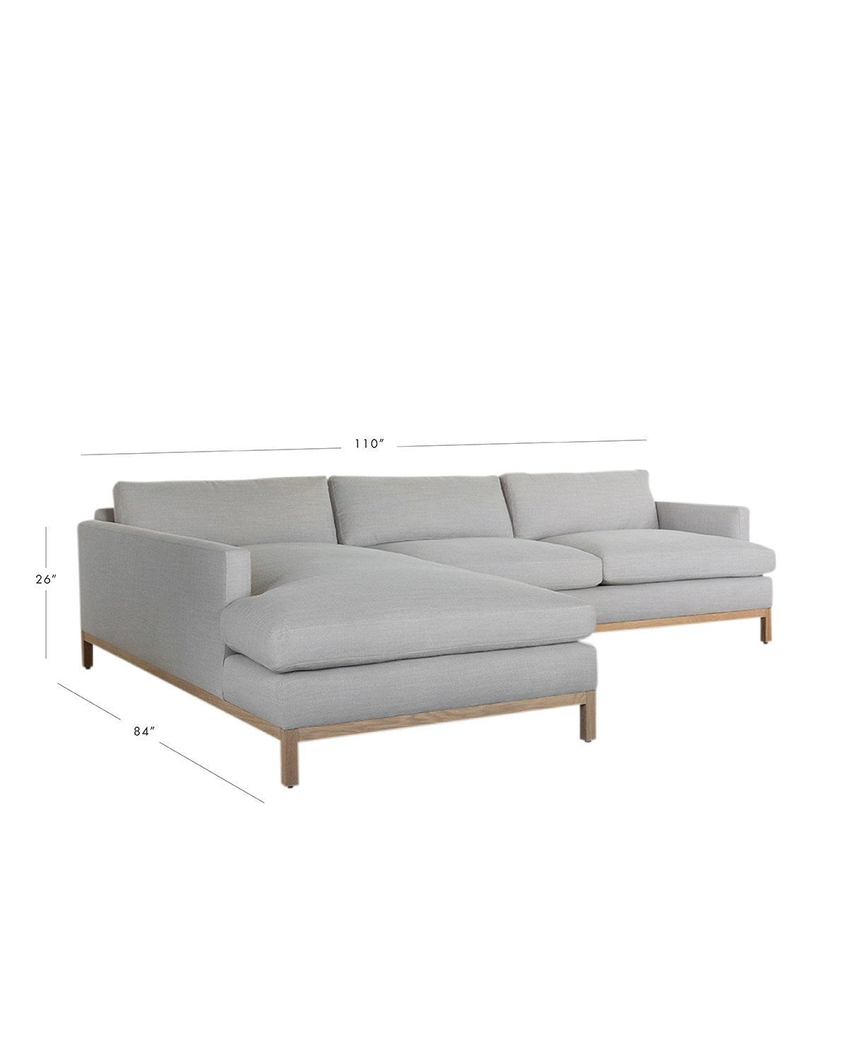Modern style meets comfort with our streamlined Buckley Leather Sectional. Completely customizable, this sectional comes in varying fabrics from soft velvet to performance crypton bringing additional style and versatility to your space. Its down wrapped cushions make for luxuriously soft seating, as a kiln-dried, white oak base provides durability and quality to last throughout the ages.