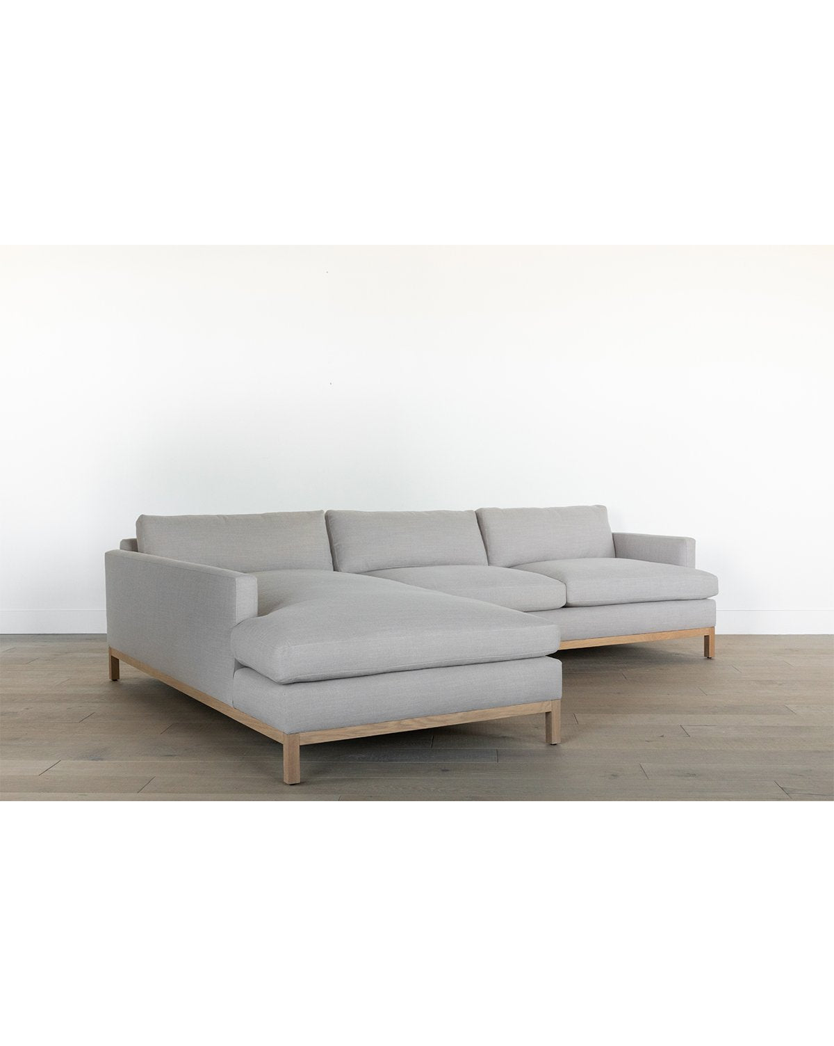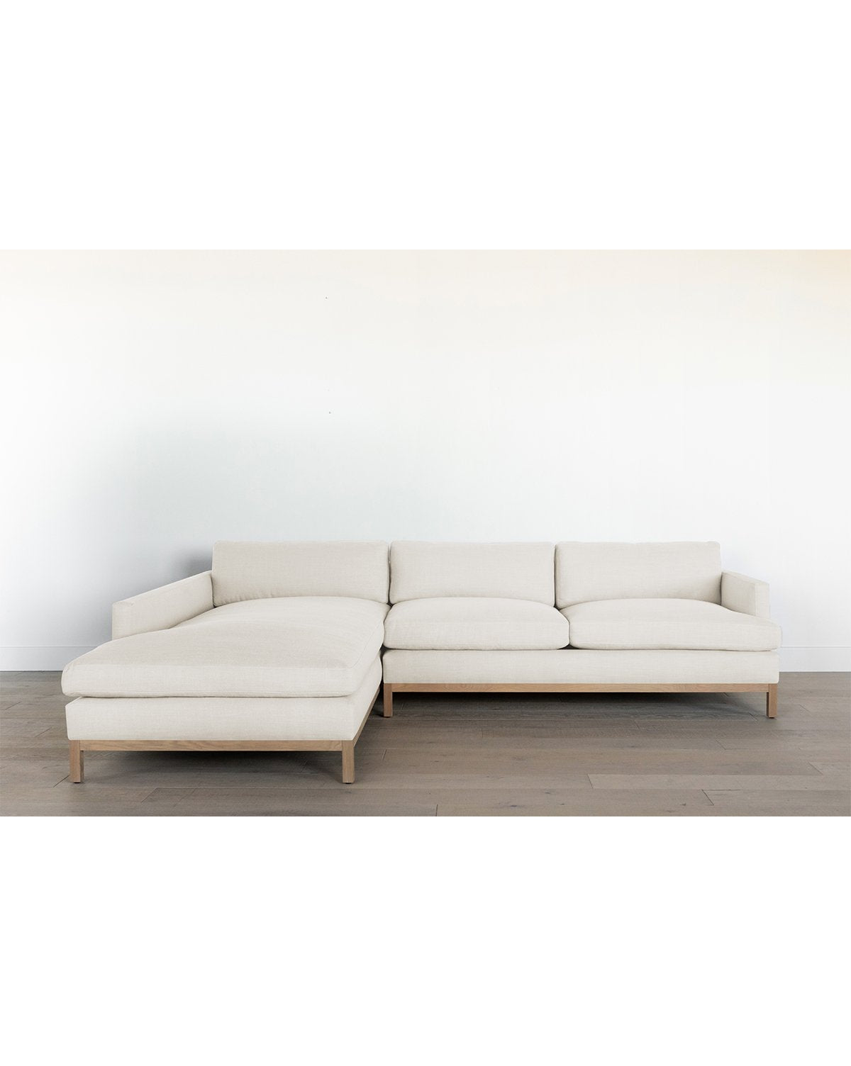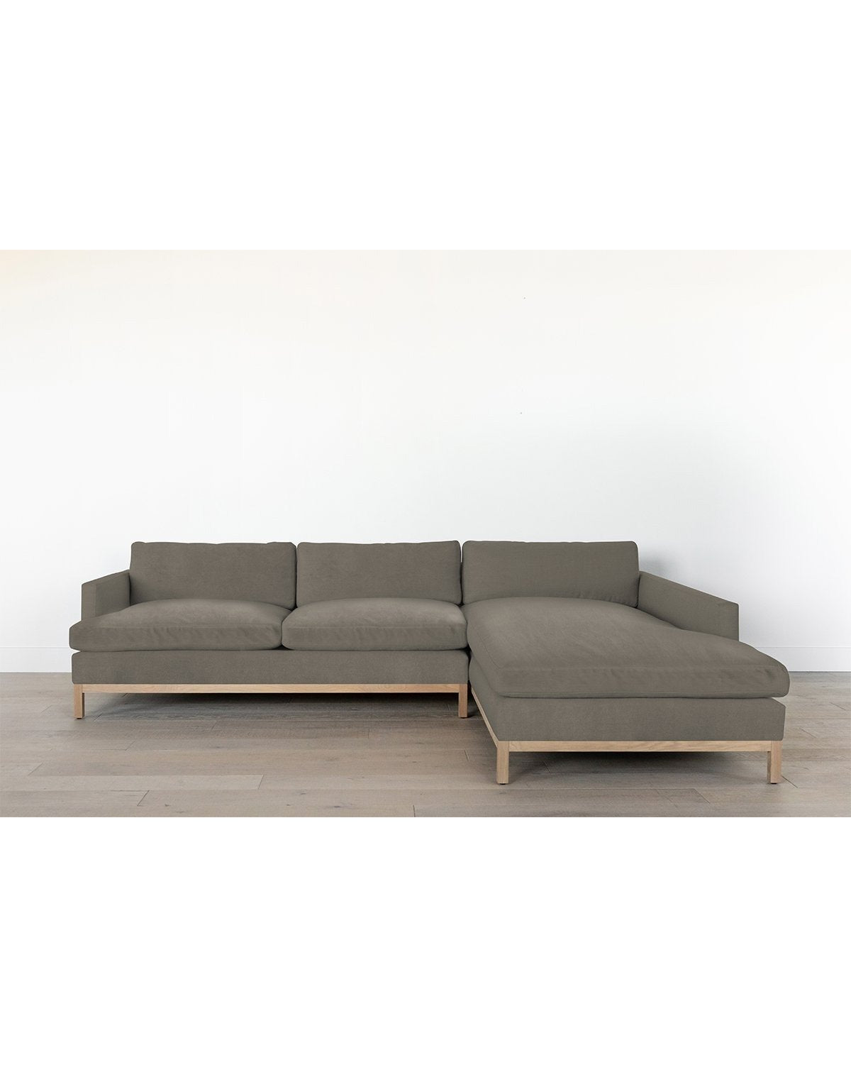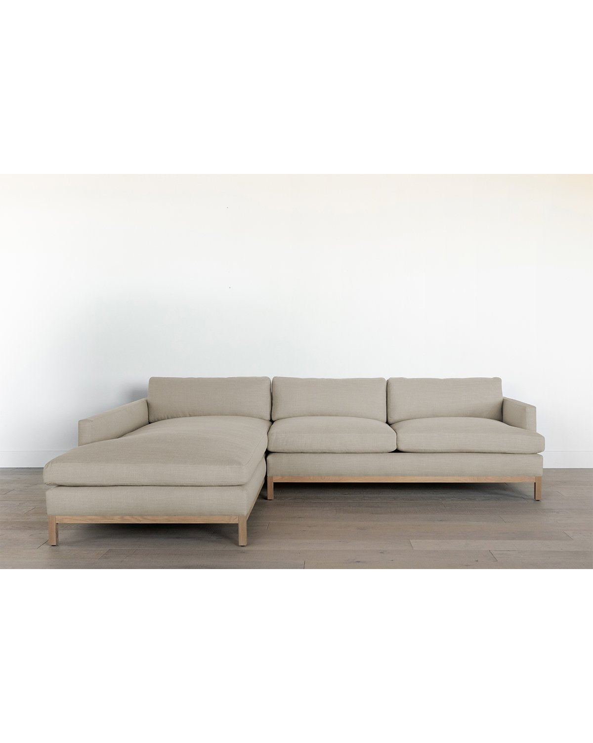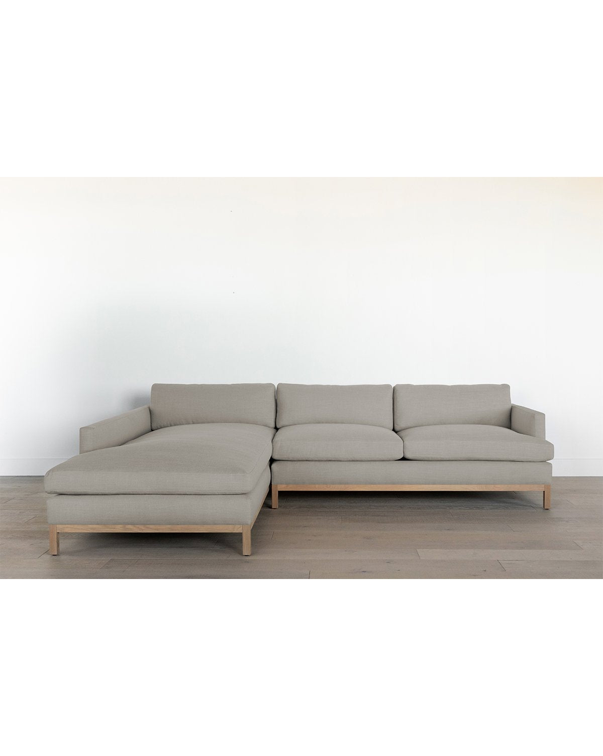 Modern style meets comfort with our streamlined Buckley Leather Sectional. Completely customizable, this sectional comes in varying fabrics from soft velvet to performance crypton bringing additional style and versatility to your space. Its down wrapped cushions make for luxuriously soft seating, as a kiln-dried, white oak base provides durability and quality to last throughout the ages.