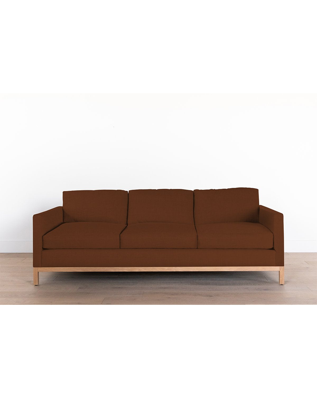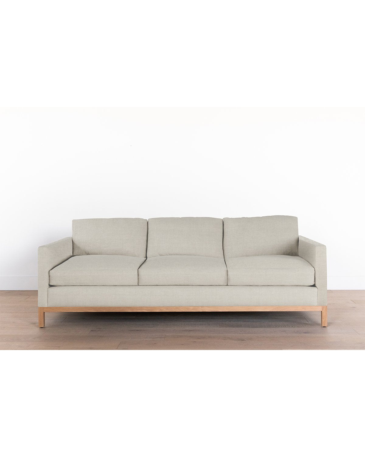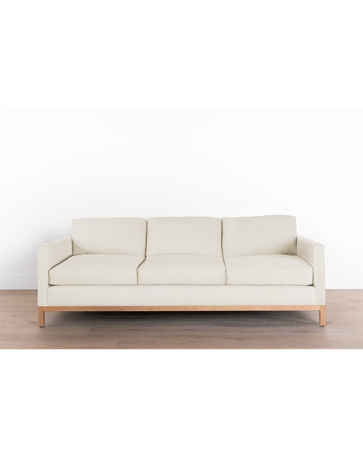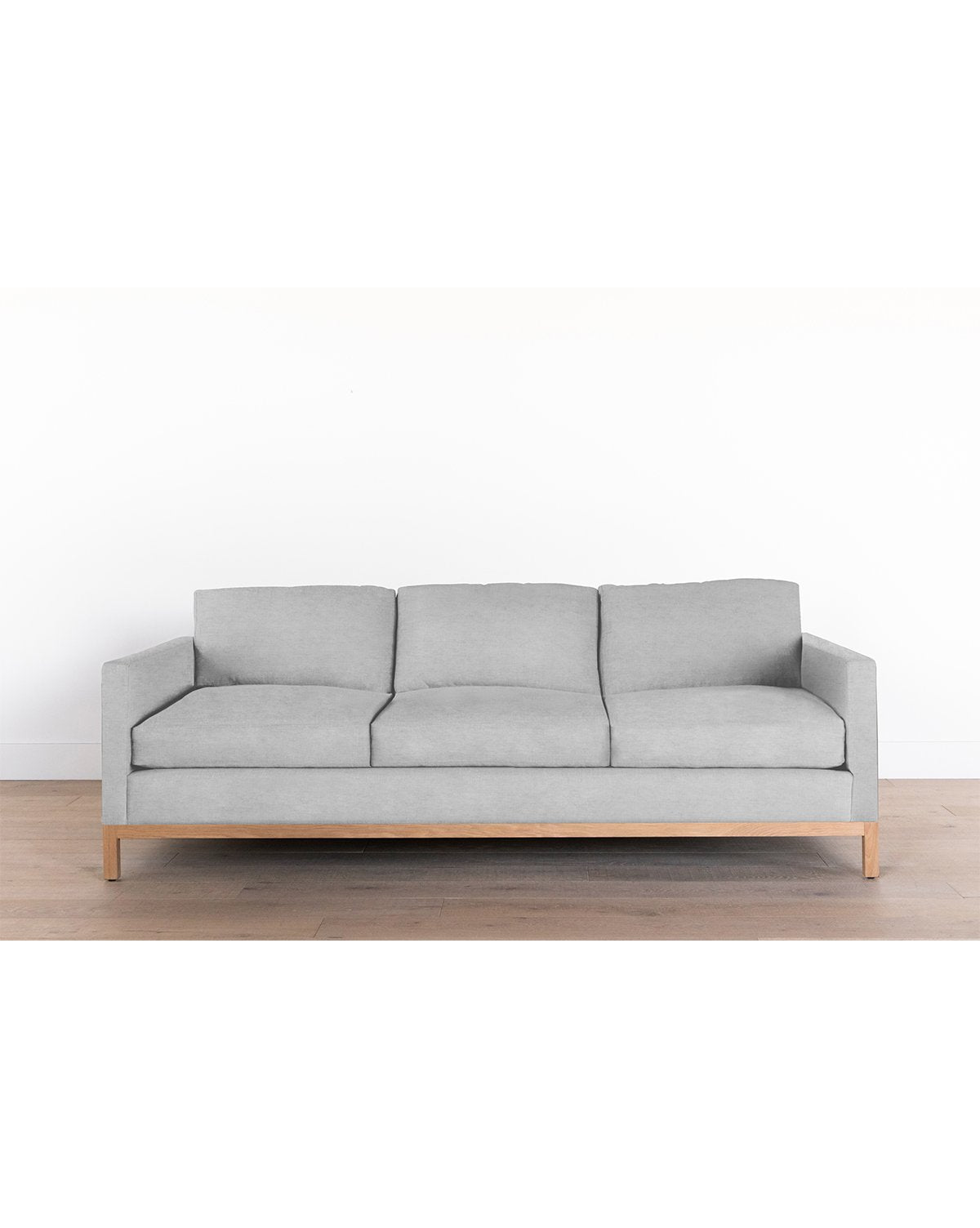 Featuring a traditional three cushion design, our Buckley Sofa updates your space with its modern, streamlined details. Completely customizable in a wide array of fabrics from performance crypton to smooth velvet, this sofa brings luxurious comfort to your space. Its handcrafted, white oak frame is proven through a kiln-dried process for both quality and durability, standing the test of time.