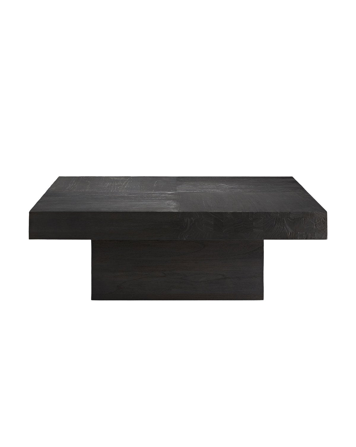 Crafted with keen attention to detail, the wood that forms the Campbell Coffee Table is first sandblasted for a charred wood finish, then brushed for texture and finished with a slight gloss. Styled with your favorite trays or vases, its deep black color, and large stature creates the perfect base for layering in your living room.
