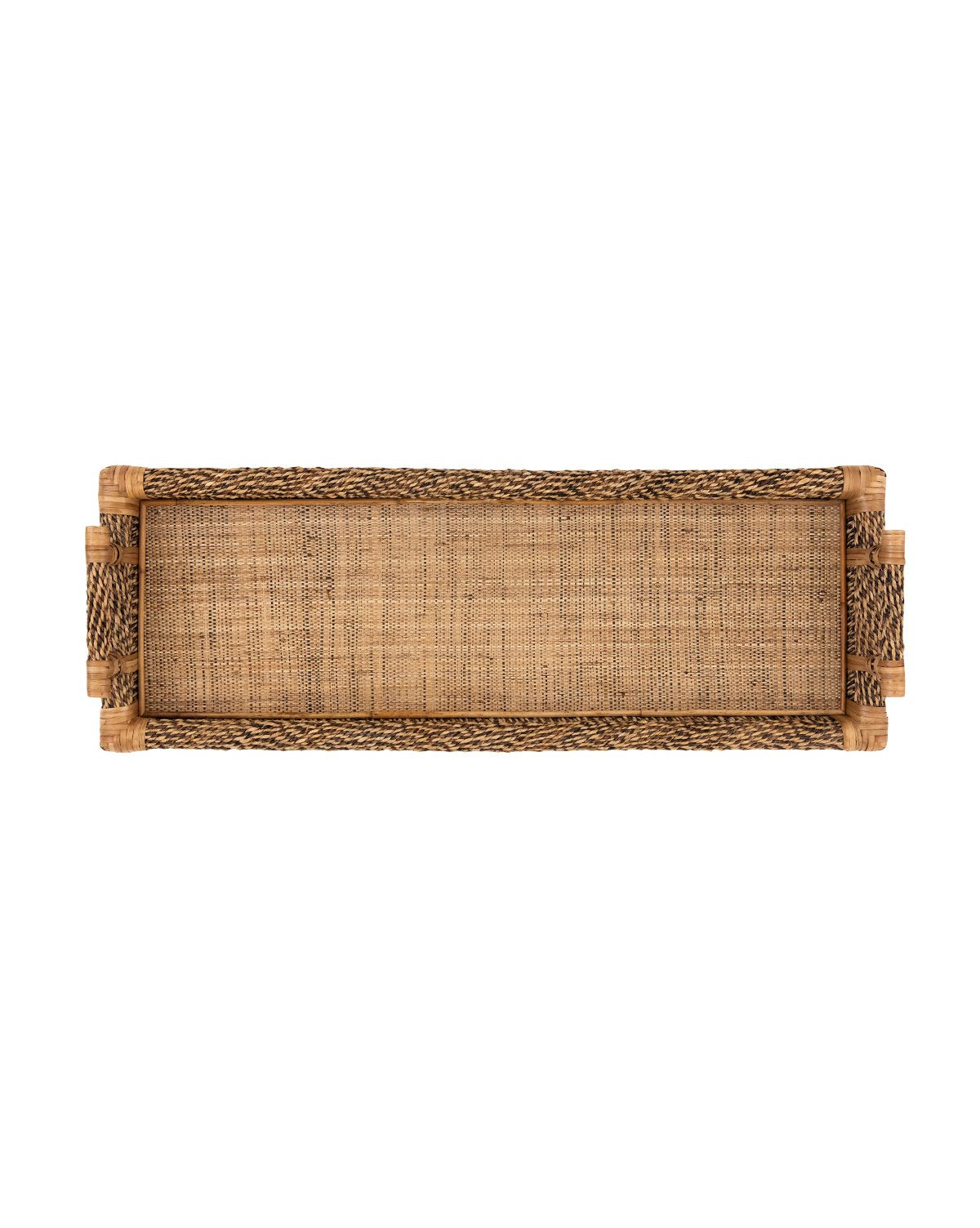 Crafted entirely from natural materials, multi-colored abaca rope is woven over a pole rattan frame for a rich dose of visual texture. Take advantage of our Cane & Rope Rectangle Tray’s long scale for serving and brining new form to coffee tables and consoles alike.