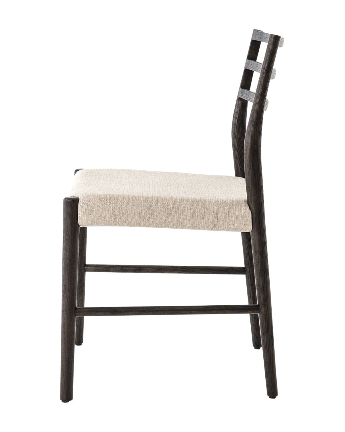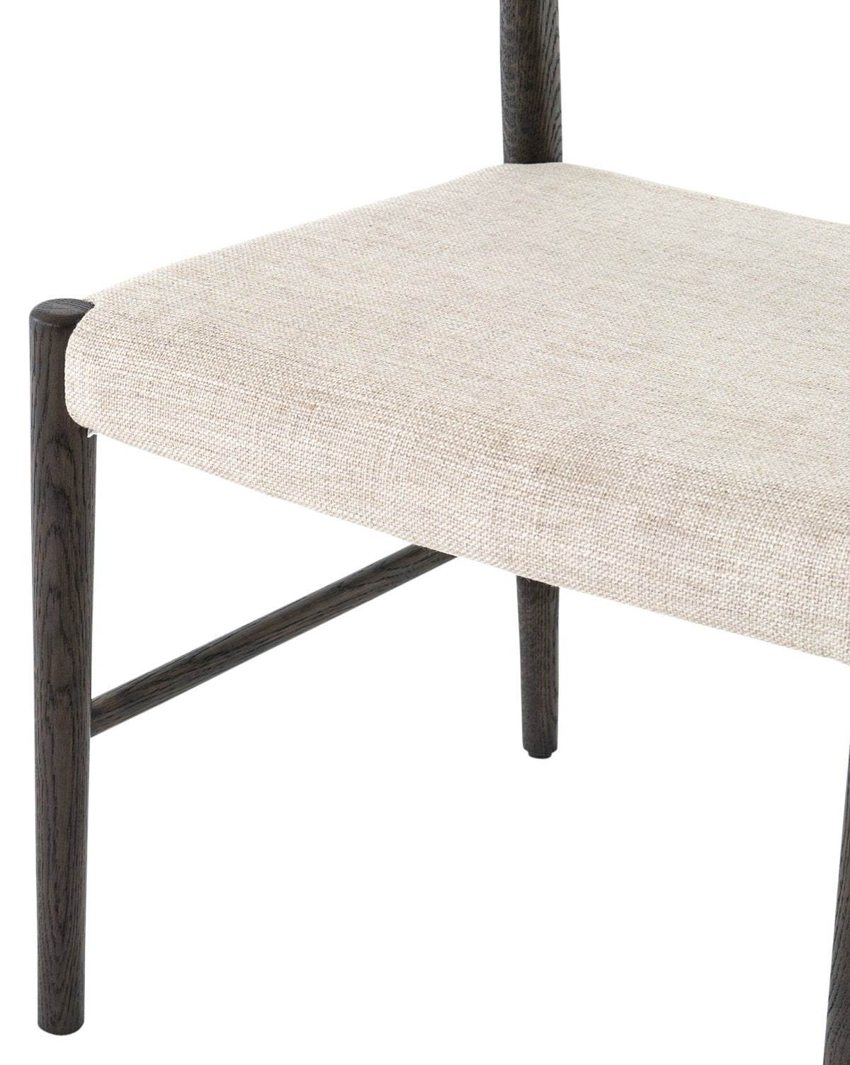 The Clayton Dining is modern take on the classic ladderback chair. Its scrubbed oak frame features a carbon finish, giving a clean update that still retains natural depth, and a cotton linen blend adds visual texture and added interest.