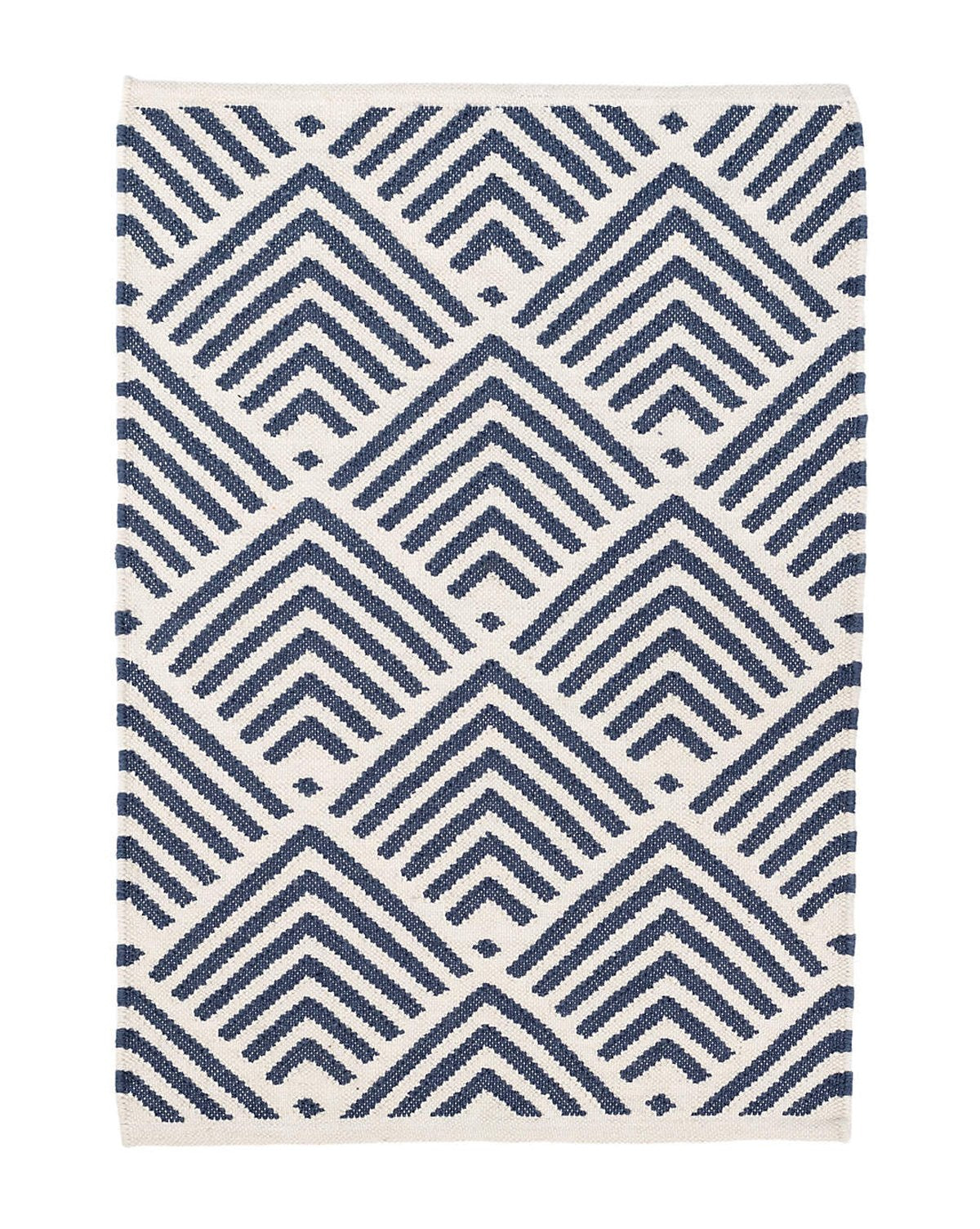 Not only is this rug eco-friendly and durable outdoors, but it’s got an eye-catching modern geometric pattern in ivory and navy, making it a design no brainer.