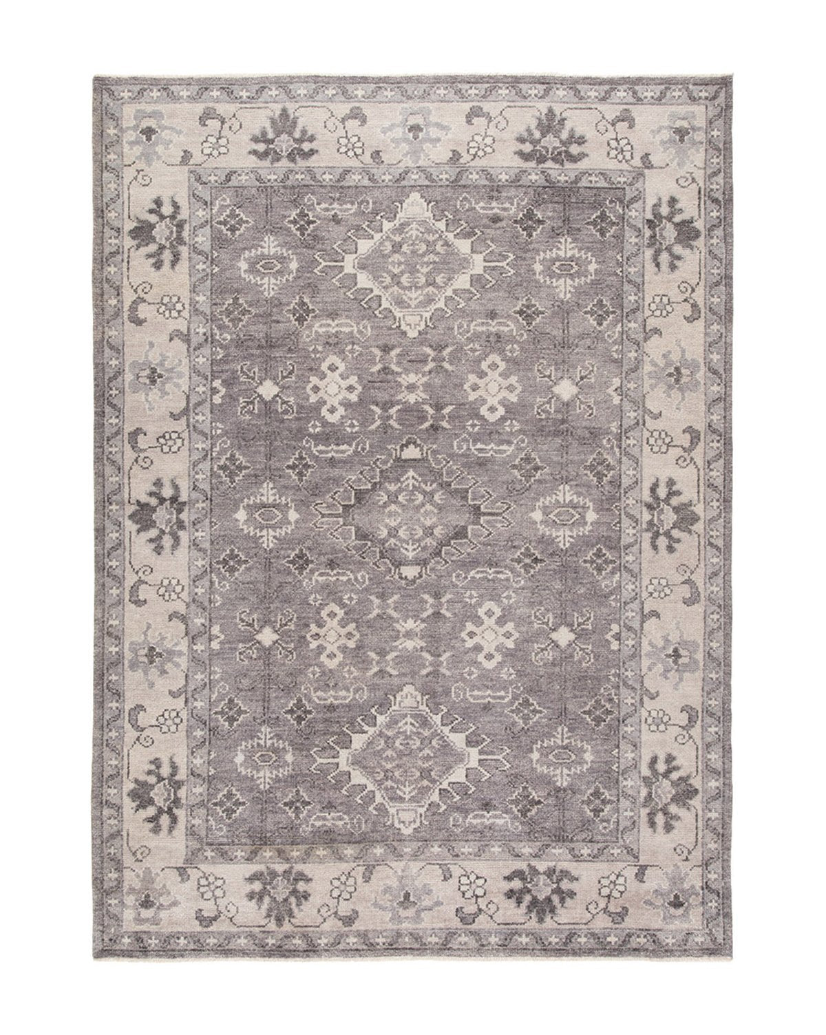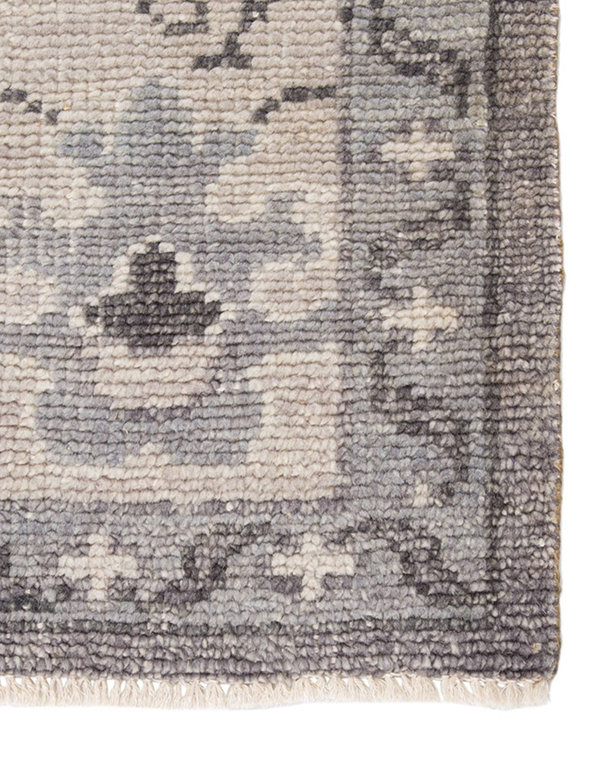 Tonal grays and muted blues and purple give a new, updated feel to the tried and true tribal pattern of the Colmar Rug. Crafted from wool and hand-knotted by skilled artisans in India, intricate details bring dimension to the neutral tones of the rug, creating a refined, transitional statement in your space.
