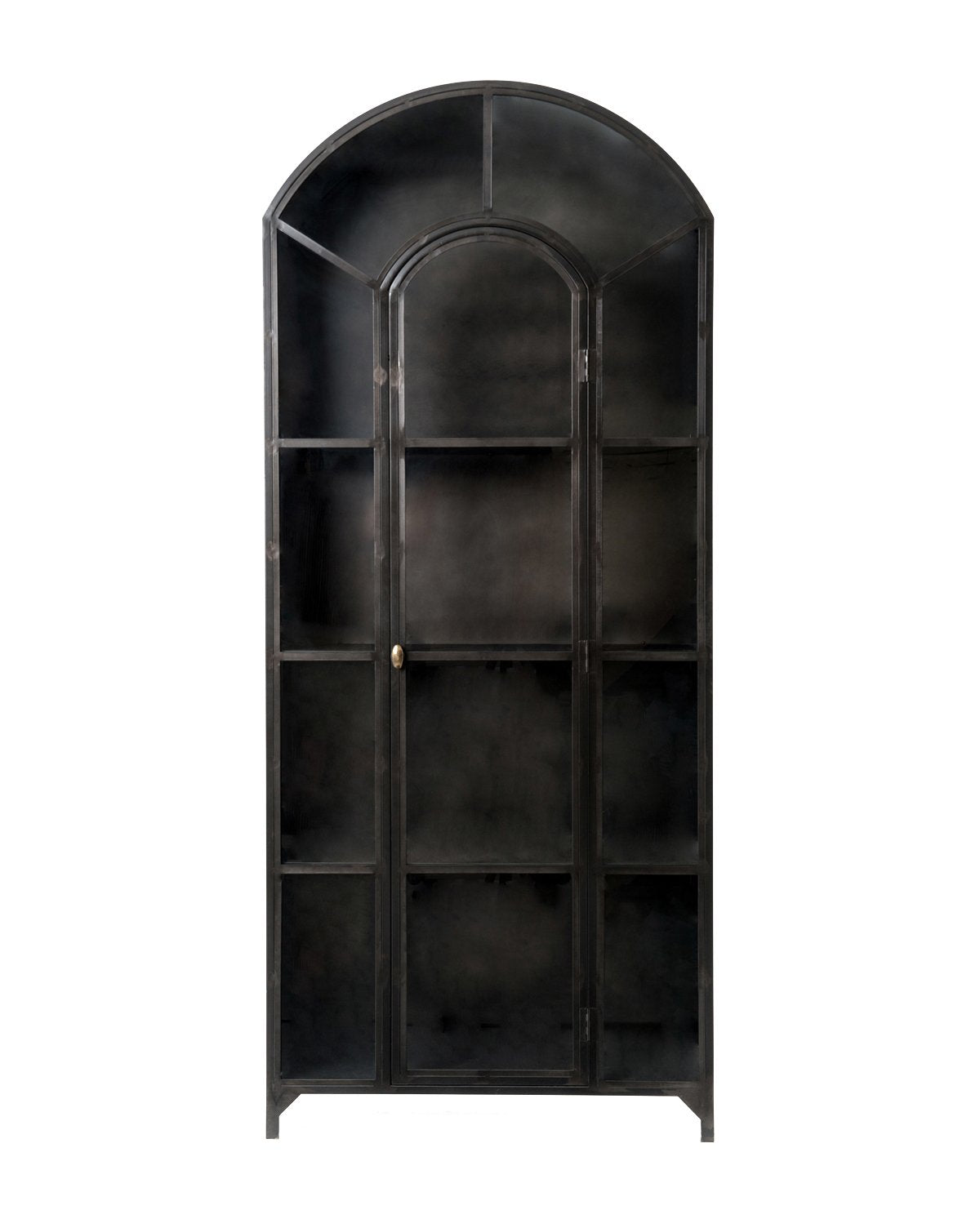 With its beautifully arched top, the Darcie Cabinet was made to display your decor in the best way. Bringing new form to your space in black solid iron, it’s the perfect home for collected treasures, barware, and books.
