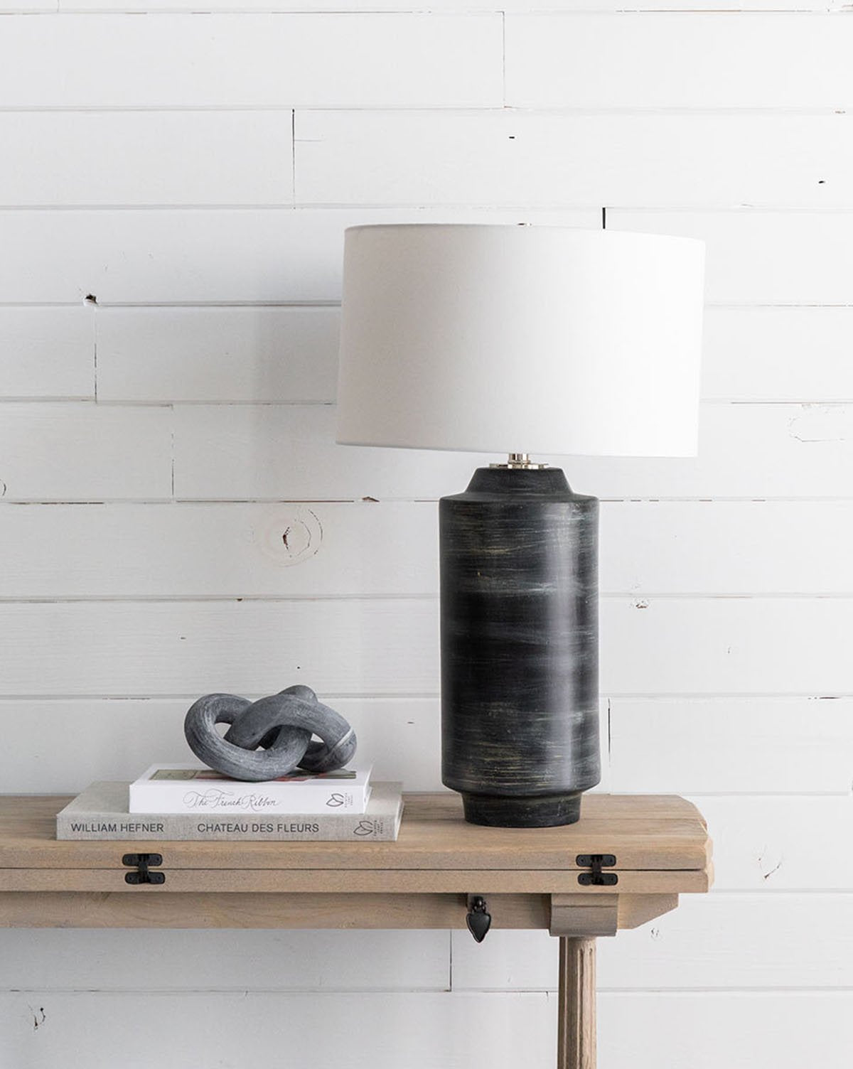 The Dayton Ceramic Table Lamp, in an ebony finish, is carefully detailed for a glimpse at its ceramic make. It feels both modern and natural, paired with a subtle, yet contemporary shape.