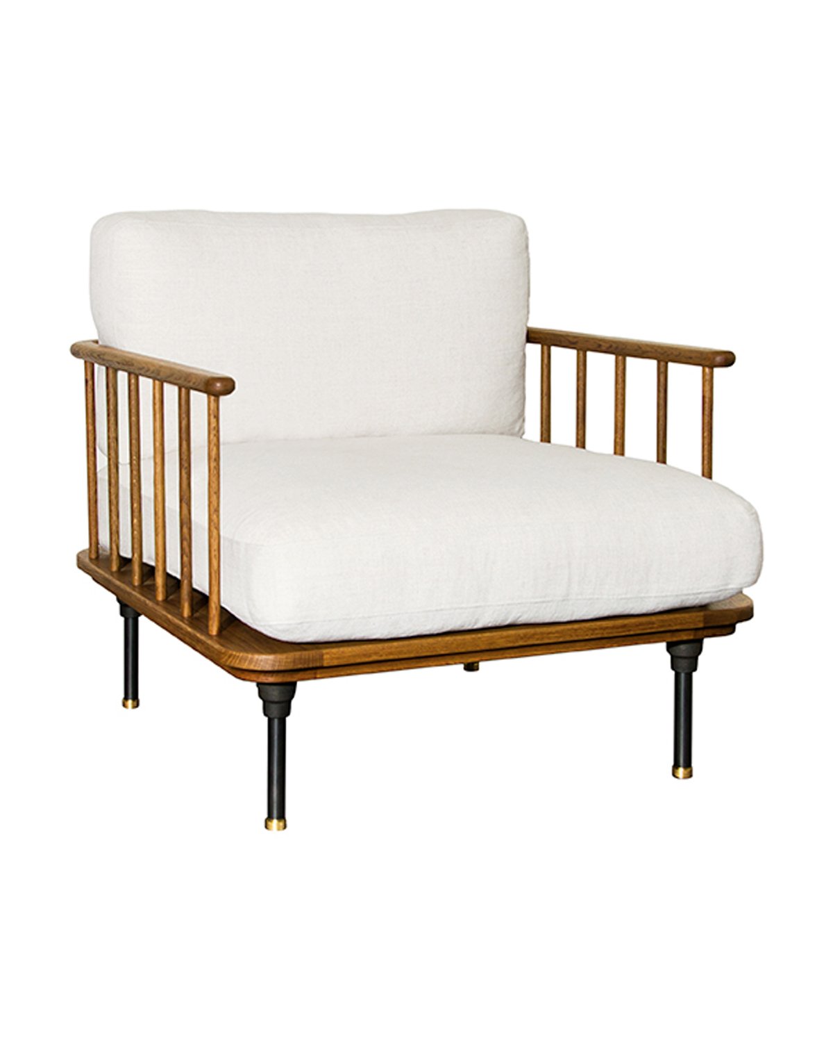 The Denton Chair’s contemporary design draws from influences around the world. Its blackened steel legs, and bronze feet caps add an industrial edge to its low profile, fumed oak frame. Without forgetting function, dense foam cushions complete the look with incredible comfort.