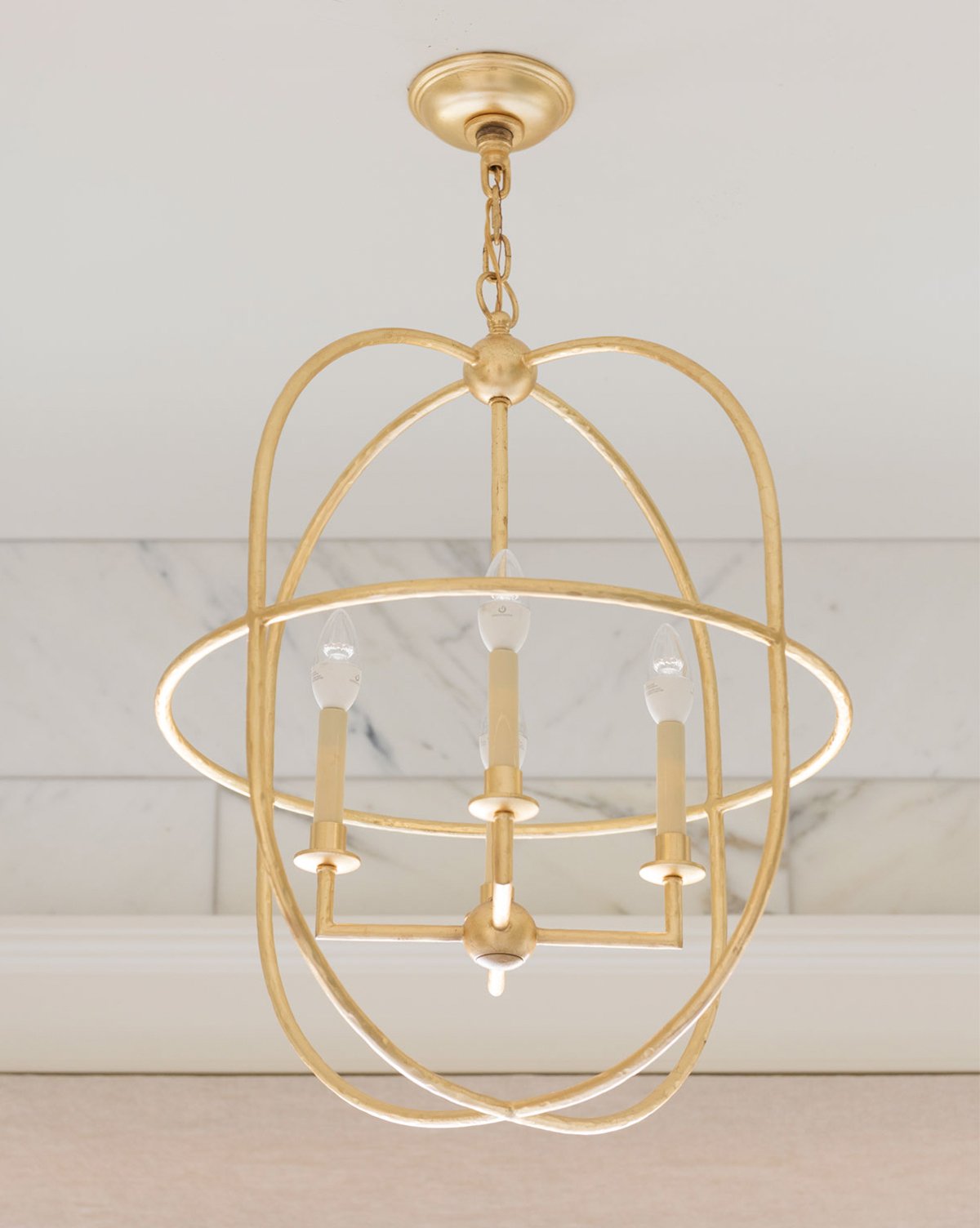 This pendant was made to make a statement in the space while sticking to a minimalist theme. We love the four candelabras caged in the simple frame.