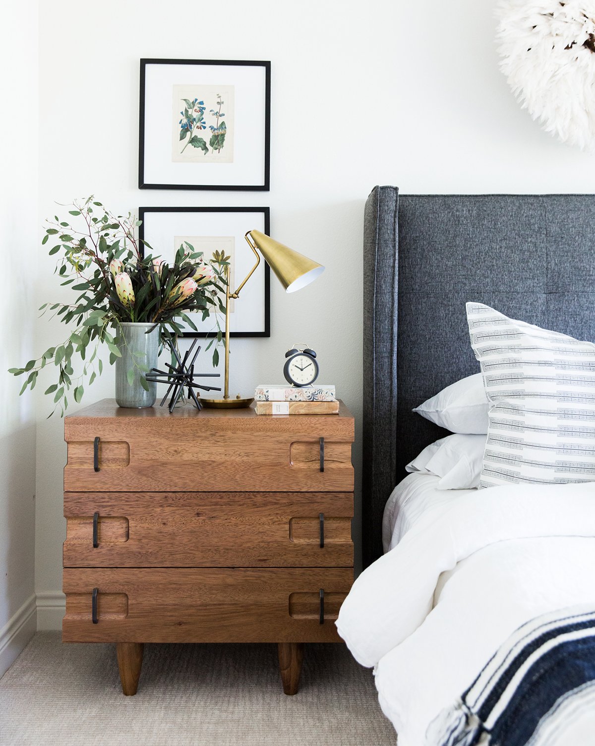 This side table is the perfect mix of functionality and form. We love the dark walnut and metal pulls.