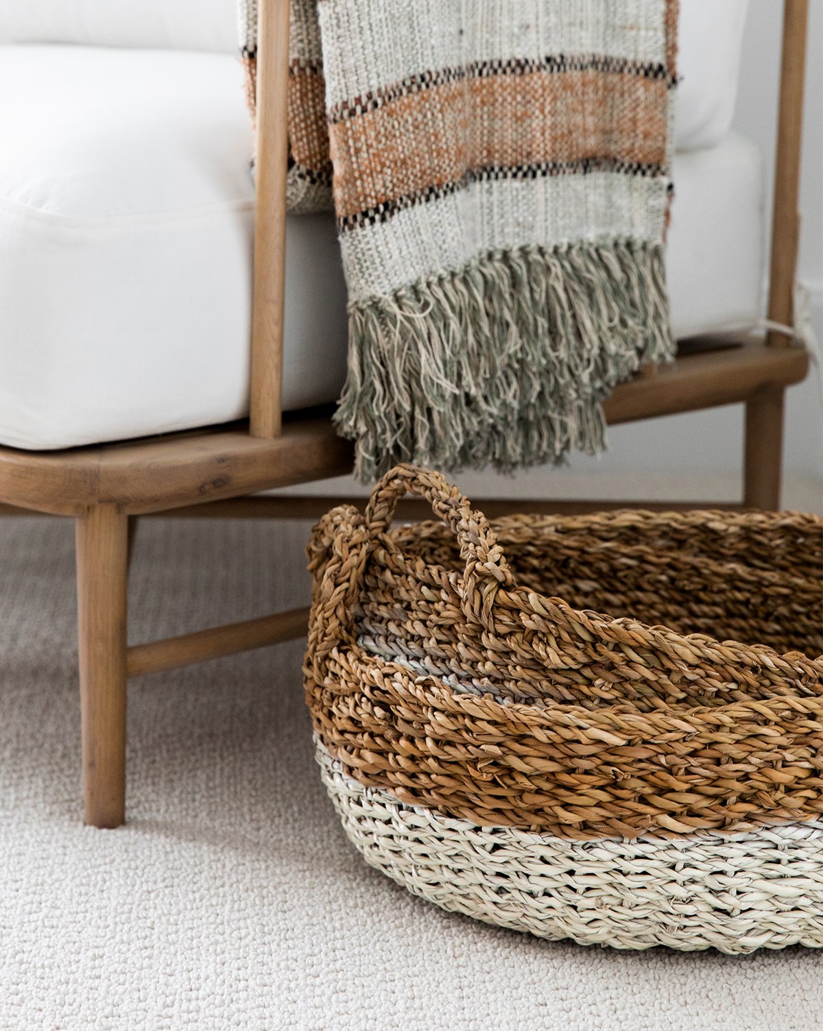 Featuring a low profile form and two tone coloring, our Dipped Seagrass Baskets bring the best of both form and function to your space. Let these supple double-walled baskets add an upscale, textured look while completing your favorite vignette.