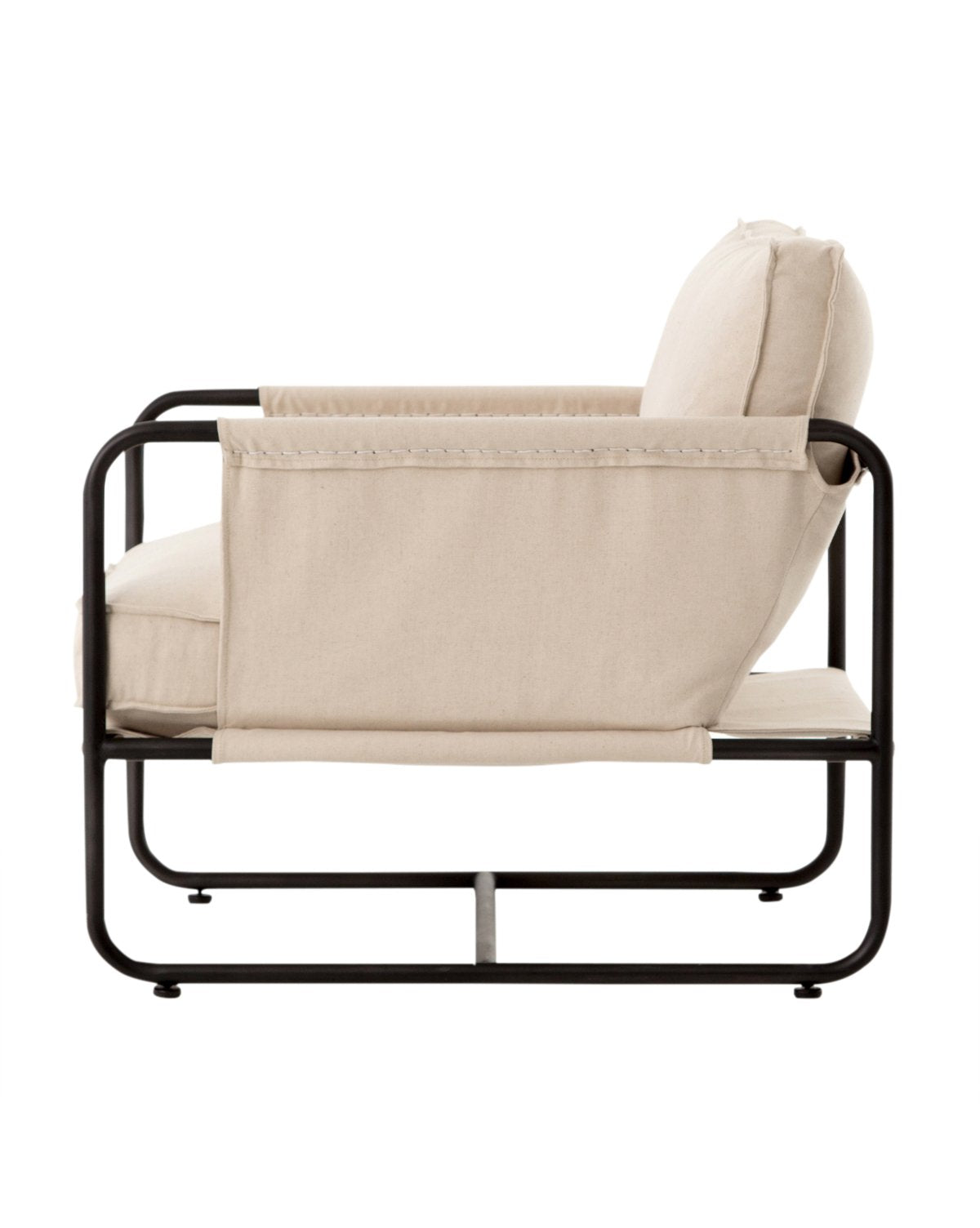 A nod to safari and campy style, the Dylan Chair’s black iron frame and natural-tone canvas seat creates beautiful contrast that catches the eye.