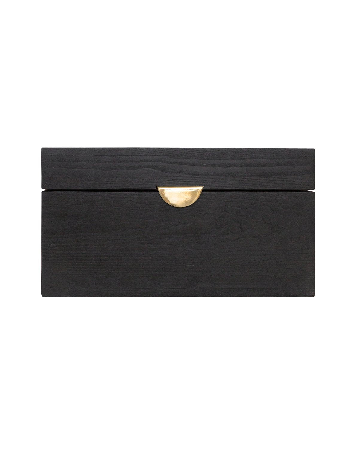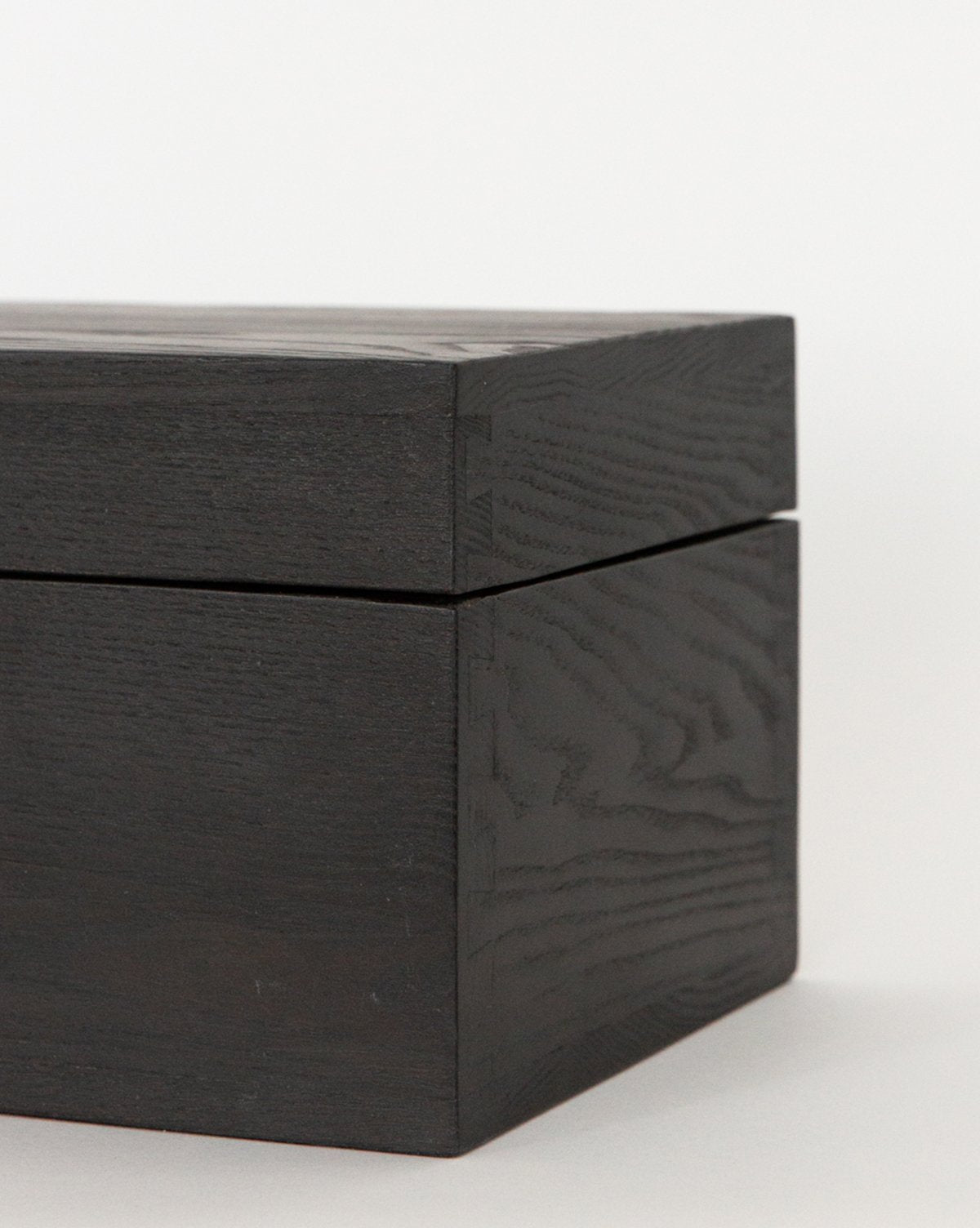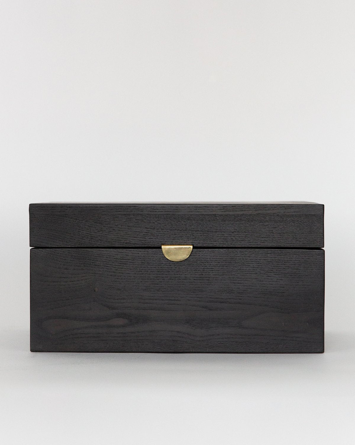 Simple is bold with our Ebony Box. Its upscale feel comes from a rich wood grain, and deep ebony finish. A peek of brass and a smooth velvet interior completes the classic design.