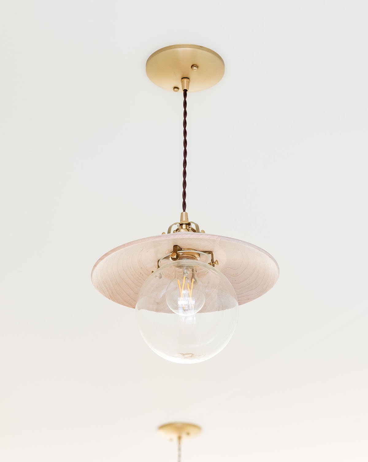The Edmund Pendant is an unexpected twist on the ordinary with handcrafted quality. Its handmade wooden shade frames a slightly oversized bulb for a play on scale and an eclectic mix of style.