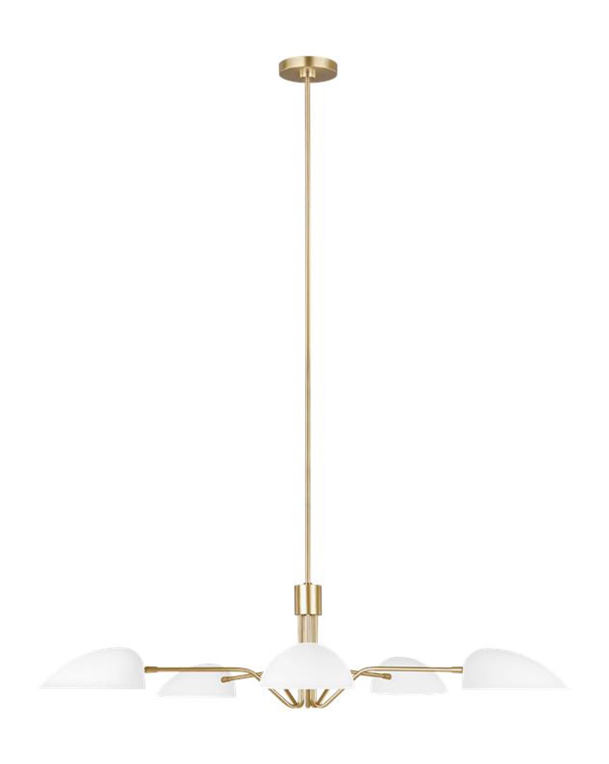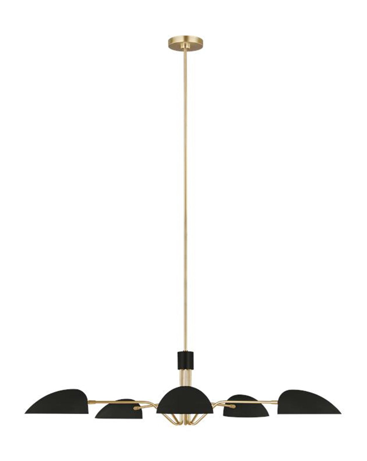 Modern and contemporary, this fixture brings abounding light and art into your space. Suspended from a long brass pole, five domed shades bring interest to the modern silhouette, with subtle brass accents complementing the design. In two sleek finishes, our Bradburn Chandelier allows you just the look you’re going for.