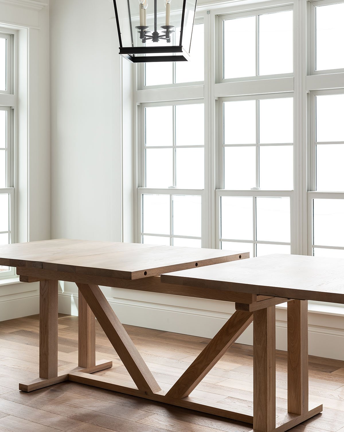We designed our Emory Extension Dining Table with both intimate family dinners and large Holiday gatherings in mind. Crafted from solid white oak, this table brings both form and function to your dining space from its architectural base, to the easy extending leaf. Its sturdy, high-quality construction stands the test of time as it grows with your family from memory to memory.
