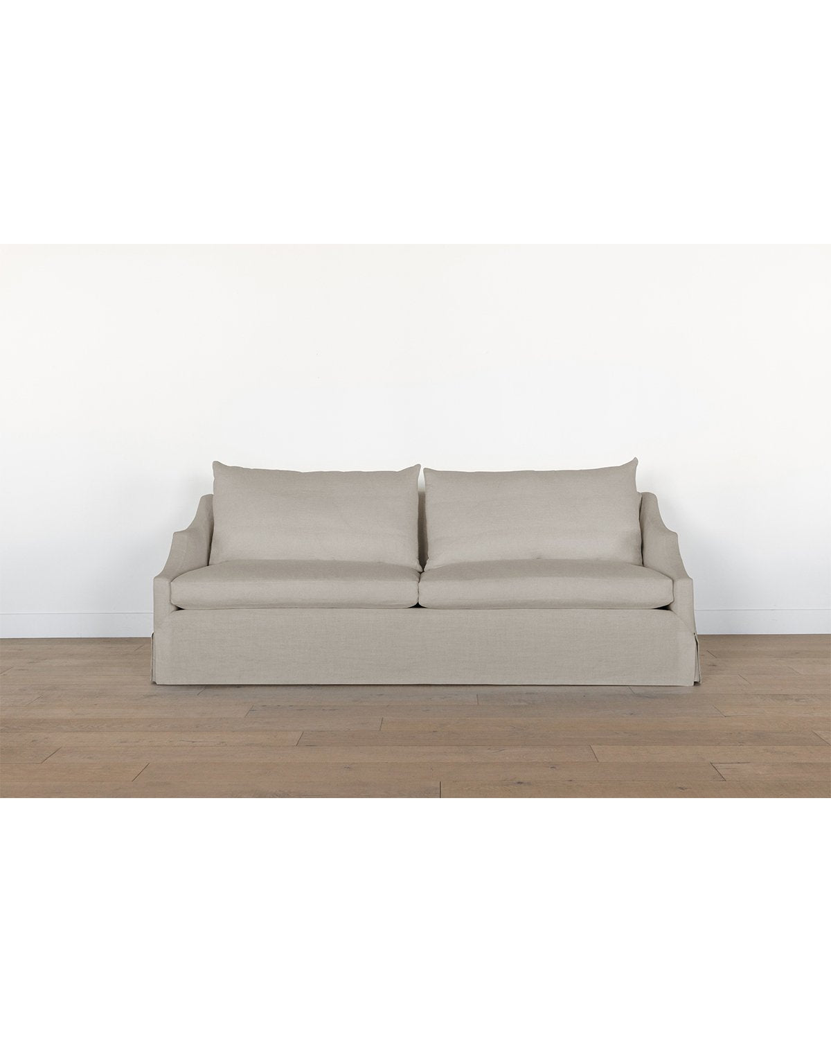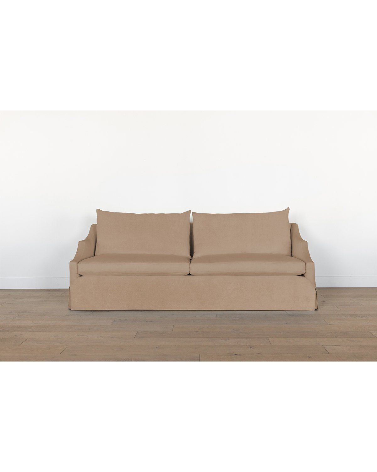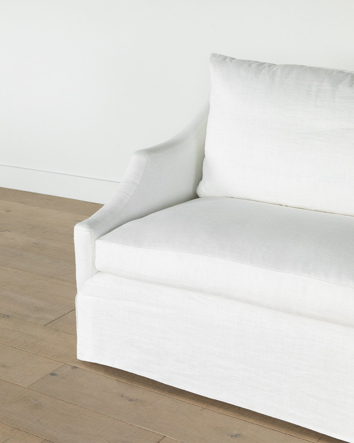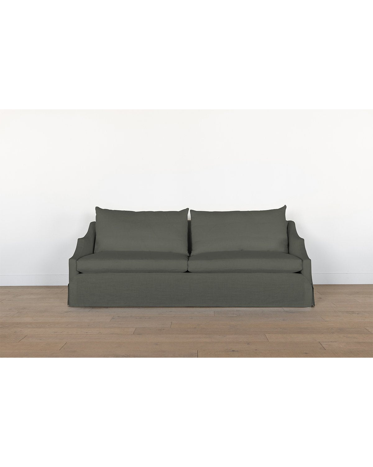Streamlined, but with classic details, the Everleigh Sofa gives new meaning to traditional meets modern. An eye-catching arm detail elevates the simple form for a look that is sure to elevate your space. With a frame crafted from solid oak, proven by a kiln-dried process for durability, and down-wrapped cushions for a luxurious comfortable experience, this sofa is hard to beat! Completely customizable in a wide array of fabrics from linen to velvet, this sofa will blend seamlessly with existing design.