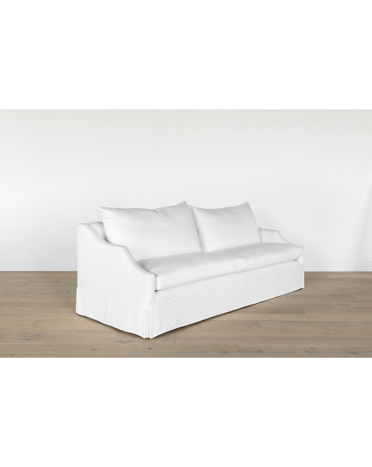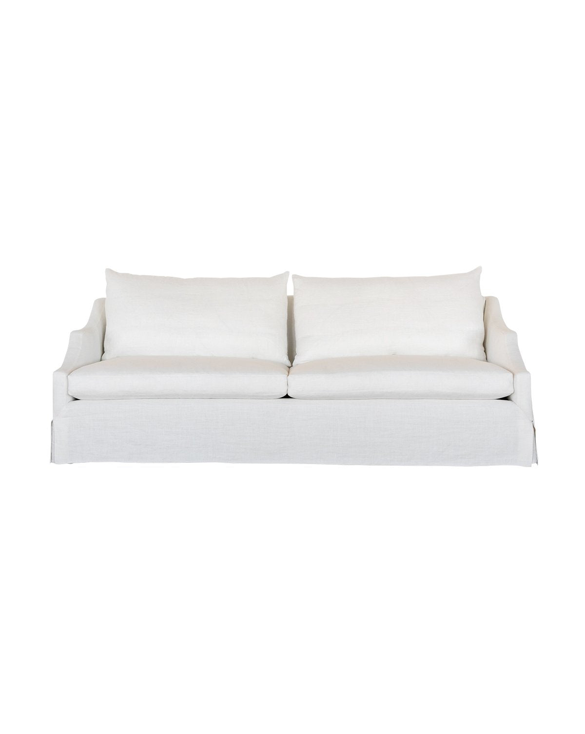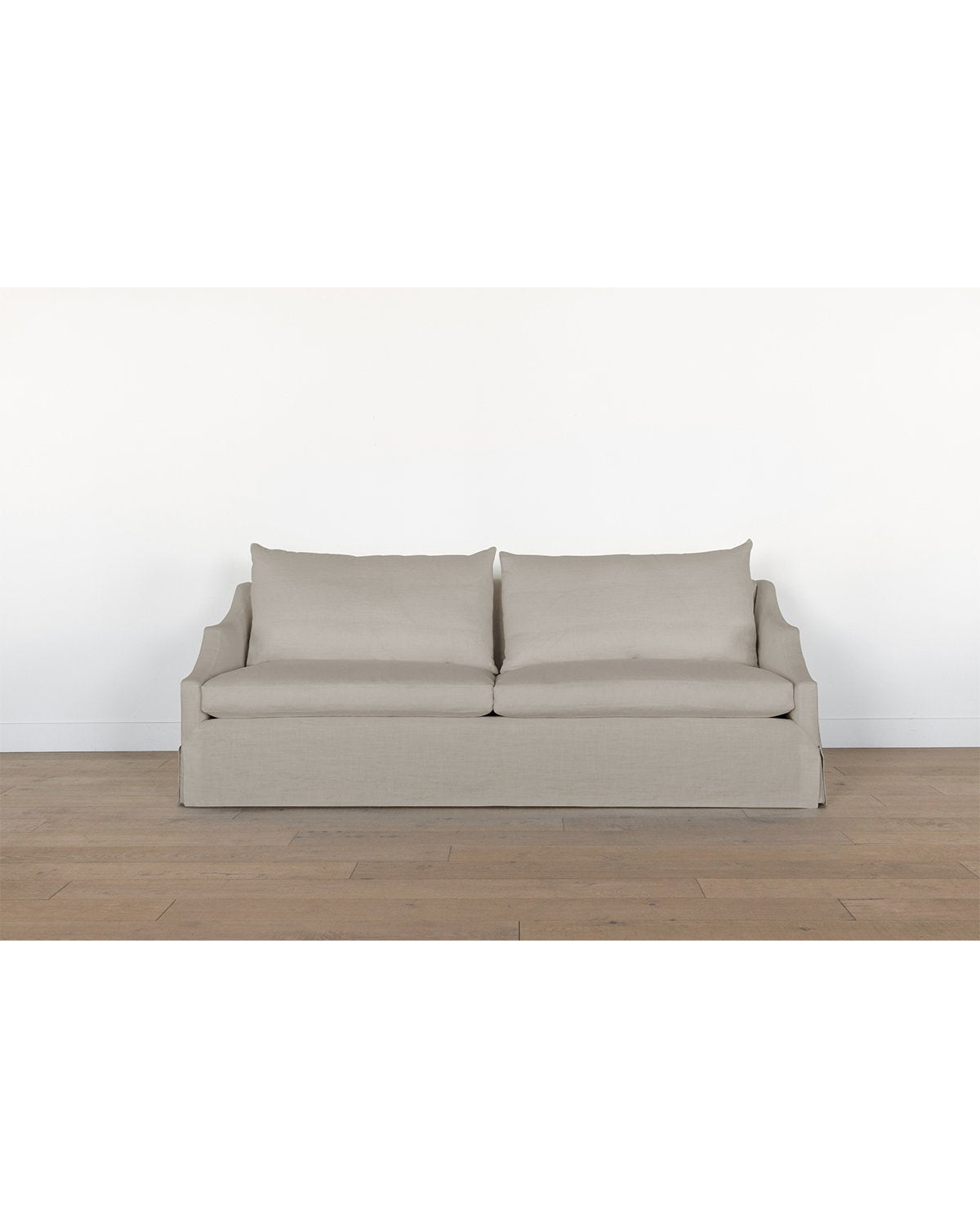 Streamlined, but with classic details, the Everleigh Sofa gives new meaning to traditional meets modern. An eye-catching arm detail elevates the simple form for a look that is sure to elevate your space. With a frame crafted from solid oak, proven by a kiln-dried process for durability, and down-wrapped cushions for a luxurious comfortable experience, this sofa is hard to beat! Completely customizable in a wide array of fabrics from linen to velvet, this sofa will blend seamlessly with existing design.