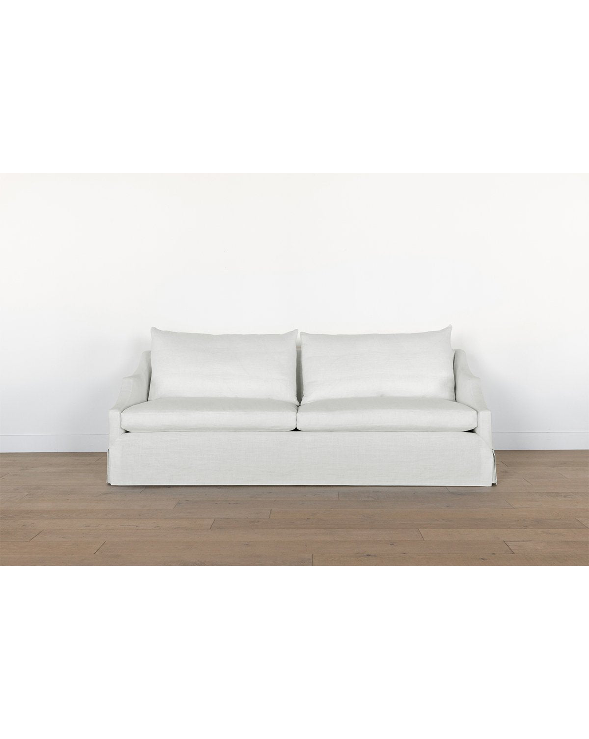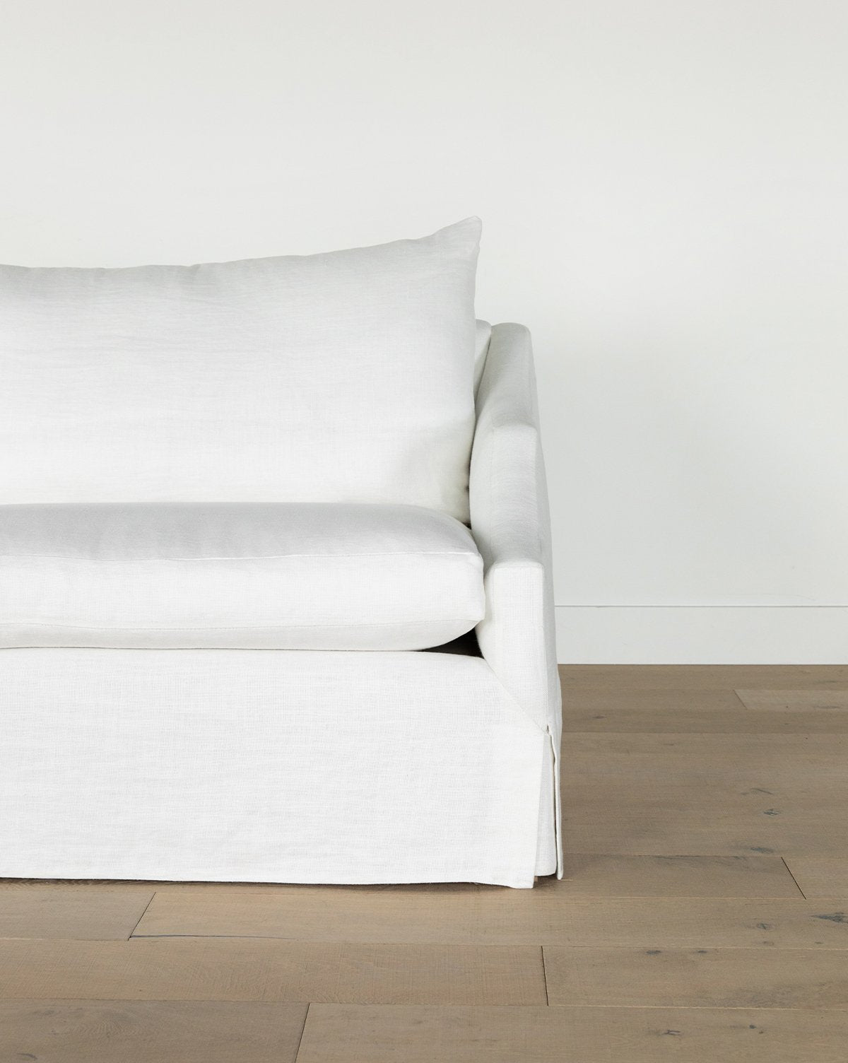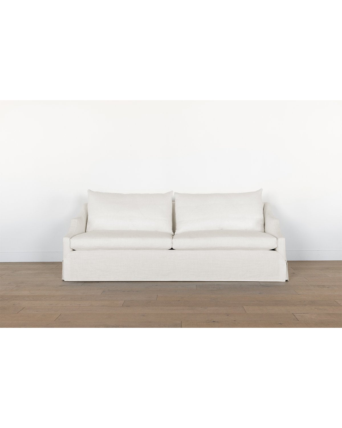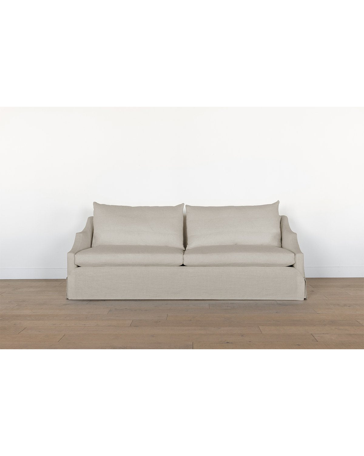 Streamlined, but with classic details, the Everleigh Sofa gives new meaning to traditional meets modern. An eye-catching arm detail elevates the simple form for a look that is sure to elevate your space. With a frame crafted from solid oak, proven by a kiln-dried process for durability, and down-wrapped cushions for a luxurious comfortable experience, this sofa is hard to beat! Completely customizable in a wide array of fabrics from linen to velvet, this sofa will blend seamlessly with existing design.