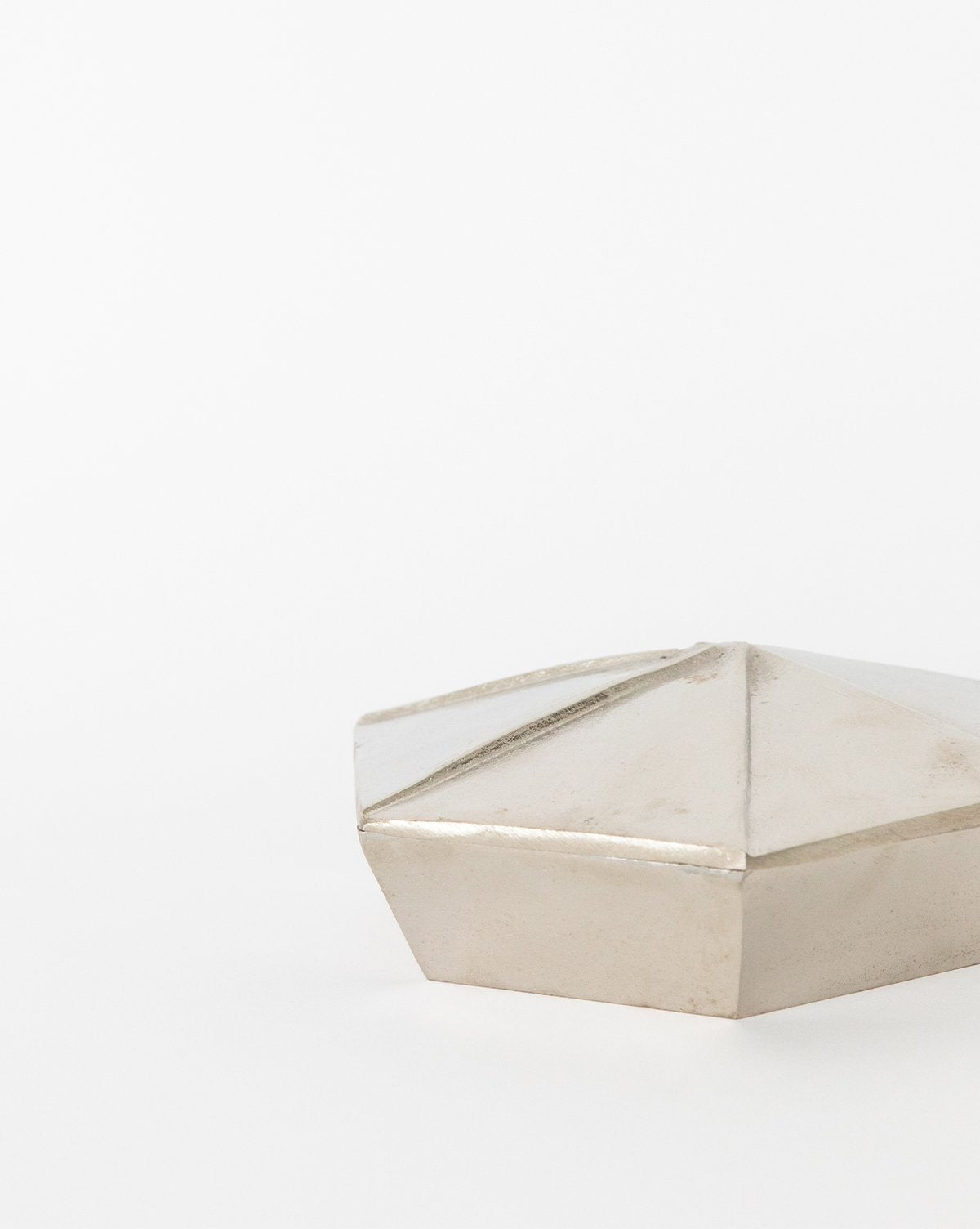 Our Folded Nickel Box is inspired by the ancient art of origami. Placed as a catch-all on your coffee table, or drawing interest in your built-ins this box is the epitome of both form and function with its deep bronze color.