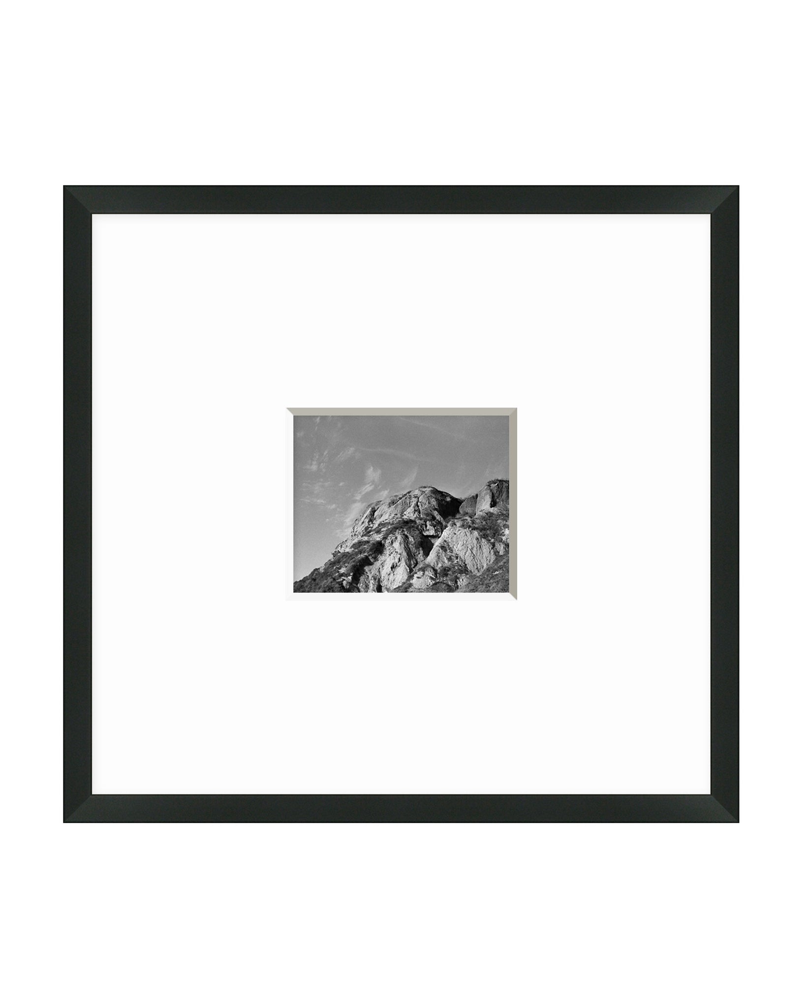 Majestic mountains span the distance of the beautiful, Fora black and white photograph. With shadows showing the dimension within each cliff face and a luminous sky above, this piece lends depth as part of a gallery wall or simply styled on its own.