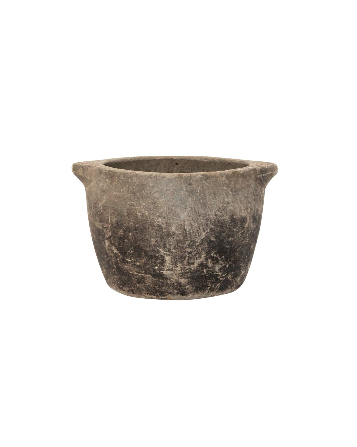 Though similar in form, each Found Granite Pot is a one-of-a-kind found item with its own cracks and character. Its sturdy stone form brings a rustic feel and unique dimension through hues of granite and weathered tones.