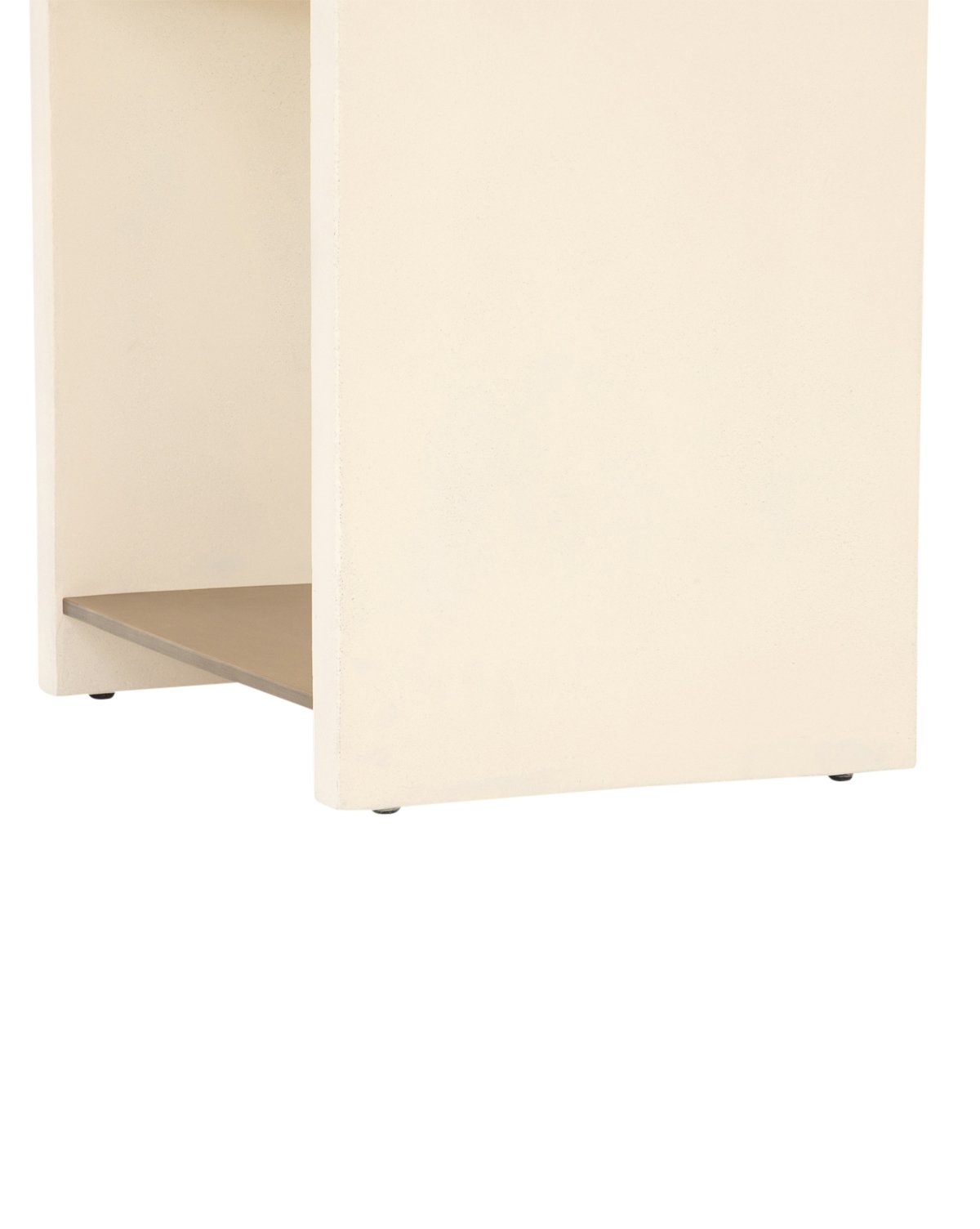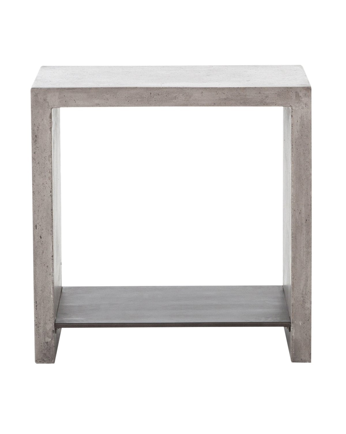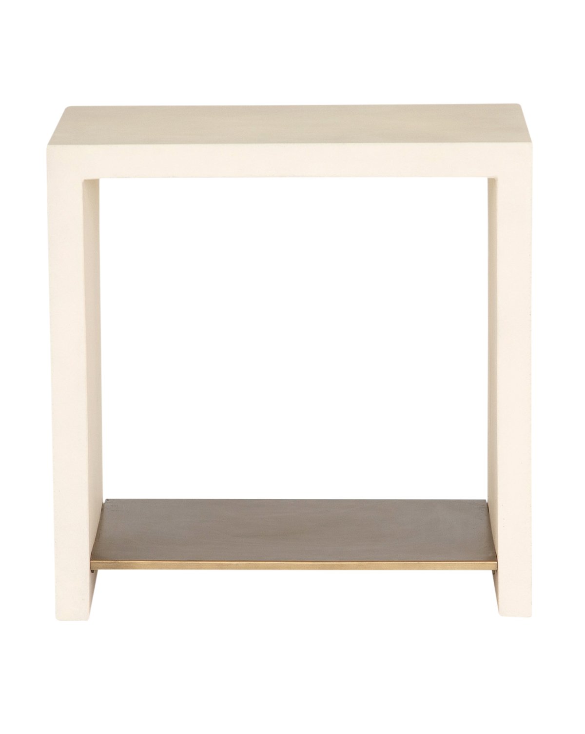 Simple in shape, our Franco Side Table brings soft, textural contrast to your home with its minimalist concrete form. An antique brass-finished shelf adds a touch of glam while complementing the straightforward design.