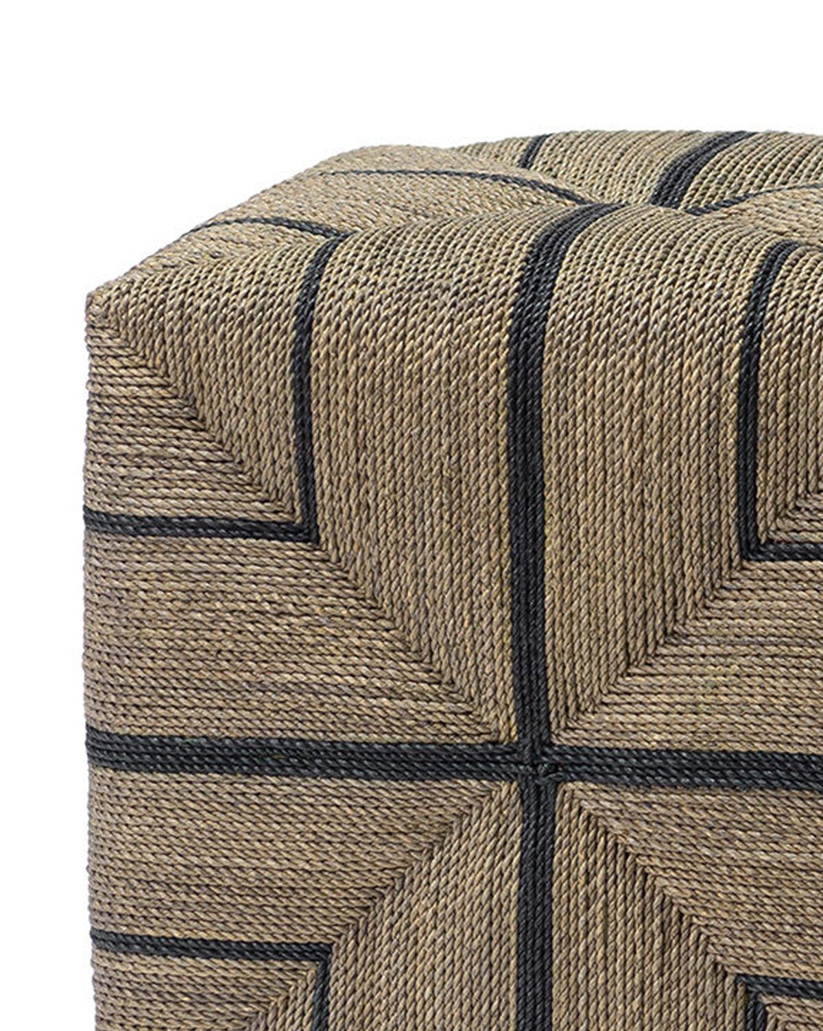 With a unique tufted square form and timeless black stripe, our Frankie Ottoman lends nautical charm to your space. Crafted from hand-twisted lampakanai rope, this ottoman makes a statement placed in pairs by your fireplace or simply stowed under your entryway sideboard, completing the perfect vignette.
