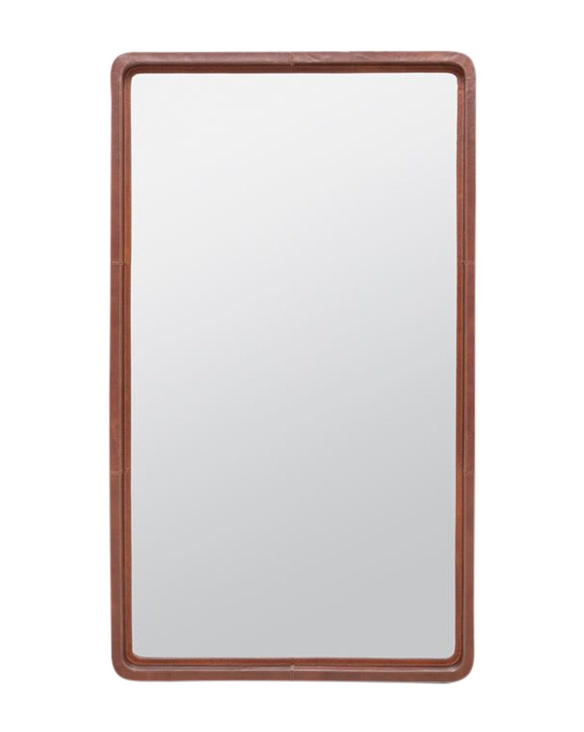 The retro mirror has a full grain tobacco leather with contrast stitching and rounded corners to complete the look. Hang in the home for ultimate sophistication.